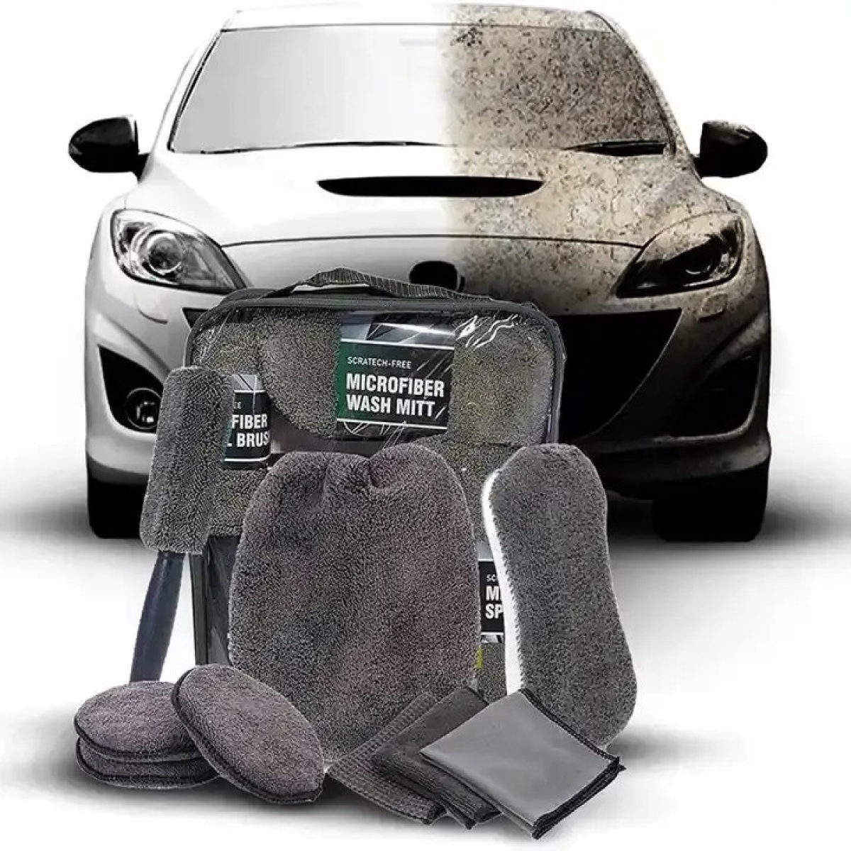 Комплексний набір для догляду за автомобілем: все для чистоти та блиску Цей універсальний набір для догляду за автомобілем створений для тих, хто цінує бездоганну чистоту й акуратність. Двостороння рукавиця для мийки делікатно видаляє забруднення з кузова, не залишаючи подряпин і розводів, а також ефективно вбирає вологу. Вона стане чудовим вибором як для зовнішньої мийки, так і для догляду за салоном і полірування деталей. Двостороння губка з набору забезпечує густу піну, допомагаючи легко справлятися із забрудненнями. Спеціальна сітка на одній зі сторін ідеально підходить для видалення стійкого бруду. Ролик для колісних дисків і шин допомагає підтримувати їхній блиск і чистоту, легко впораючись із дорожнім пилом і нальотом. Три диски для полірування забезпечать ідеальний фініш: вони підходять як для нанесення воску, так і для полірування пластикових деталей салону. Доповнюють набір серветки з мікрофібри з антистатичним ефектом. Завдяки різному плетінню ниток, вони придатні для очищення скла, дзеркал і приладової панелі, залишаючи поверхню ідеально чистою. Всі предмети акуратно упаковані в прозорий чохол на блискавці, що спрощує зберігання і транспортування. Особливості набору: Двостороння рукавиця: для миття, полірування та сушіння автомобіля. Двостороння губка: густа піна та ефективне видалення стійких забруднень. Ролик для колісних дисків і шин: для бездоганного блиску. Три диски для полірування: підходять для нанесення воску та догляду за пластиком. Серветки з мікрофібри: антистатичний ефект і універсальне використання. Чохол на блискавці: прозорий і зручний для зберігання та транспортування. Цей набір стане незамінним помічником у догляді за вашим автомобілем, забезпечуючи легкість і комфорт у кожному етапі прибирання.