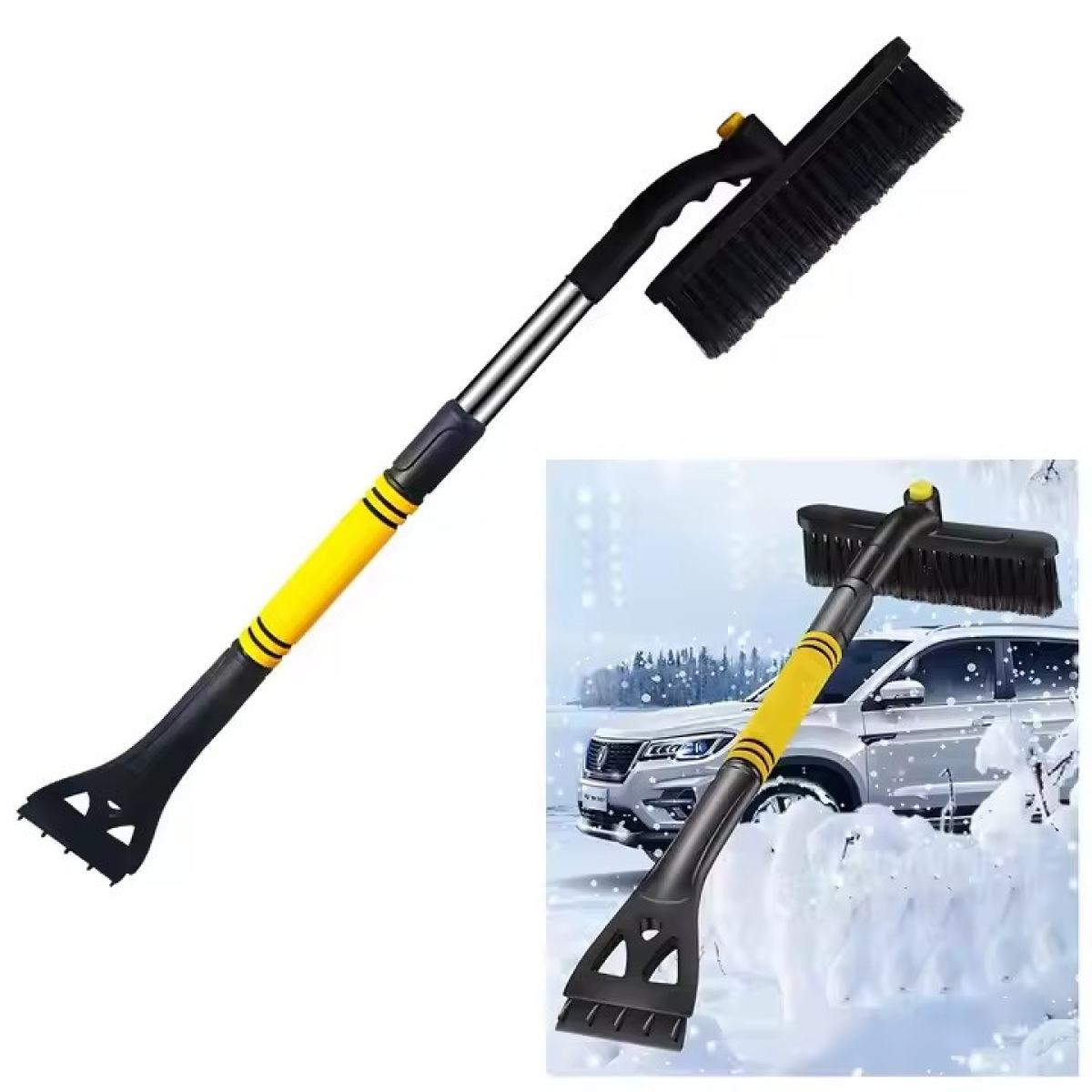 Щітка зі скребком автомобільна.Щітка для видалення льоду і снігу з авто,Телескопічна щітка для машини чорна
