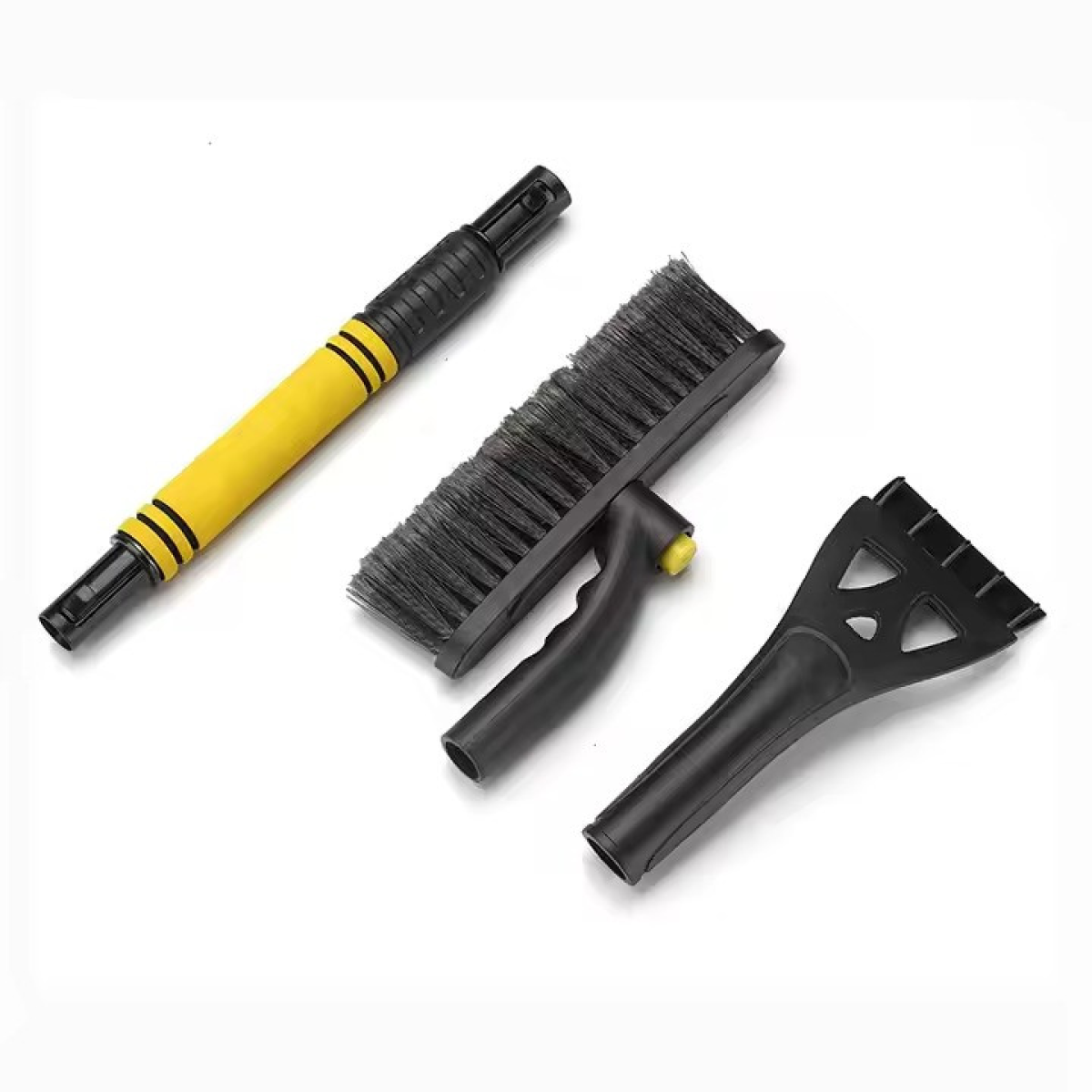 Автомобільна щітка зі скребком: універсальний інструмент для зими Щітка зі скребком ідеально підходить для швидкого і зручного видалення снігу та льоду з вікон і кузова автомобіля. Її телескопічна конструкція дозволяє легко адаптуватися до різних умов і поверхонь. Щітка виконана в чорному кольорі, а завдяки легкому алюмінієвому матеріалу ручки, інструмент зручний у використанні та довговічний. Щітка складається з трьох частин: телескопічної ручки з діапазоном довжини від 60 до 80 см, PVC-щітки завширшки 25 см і пластикового скребка завширшки 10 см. Щіткова частина ефективно очищає від снігу, а шкребок справляється навіть зі щільним льодом. Для додаткової зручності щітка повертається під кутом 45 градусів і фіксується затискачем у потрібному положенні, що робить процес прибирання більш ефективним. Особливості: Телескопічна ручка довжиною 60-80 см. Щітка з PVC шириною 25 см. Пластиковий скребок шириною 10 см. Поворотна конструкція під кутом 45°. Легкий і міцний алюмінієвий корпус.