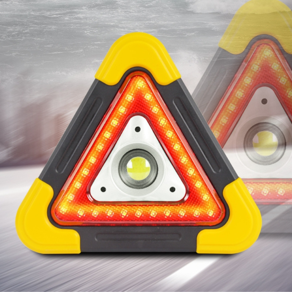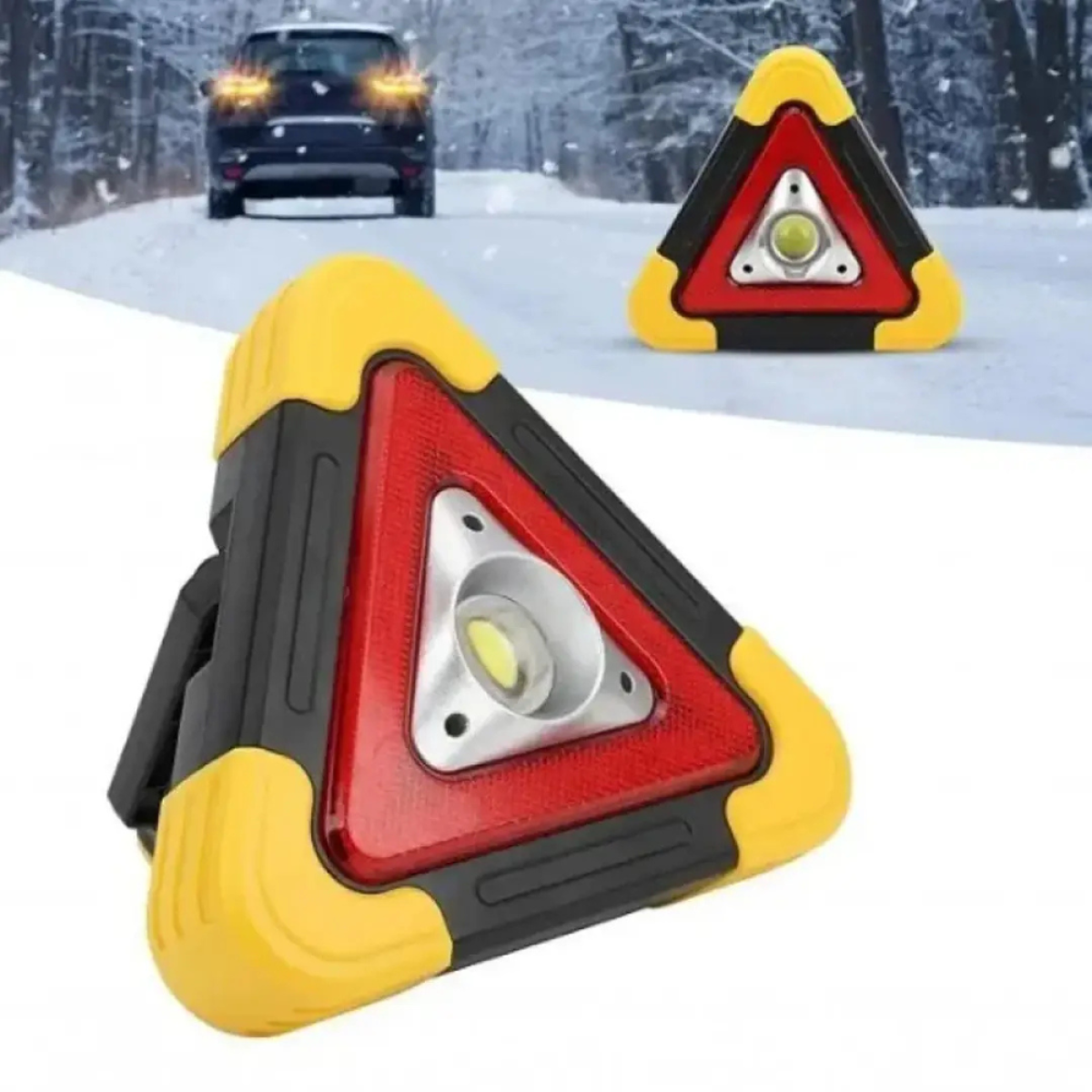 Знак “Аварійна зупинка“ в авто трикутний, акумуляторний на сонячній батареї з ліхтарем і ручкою