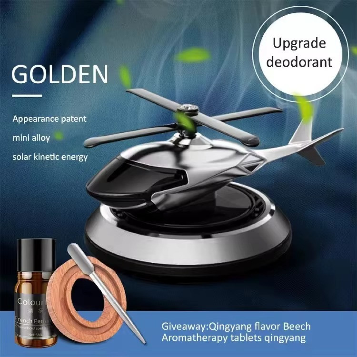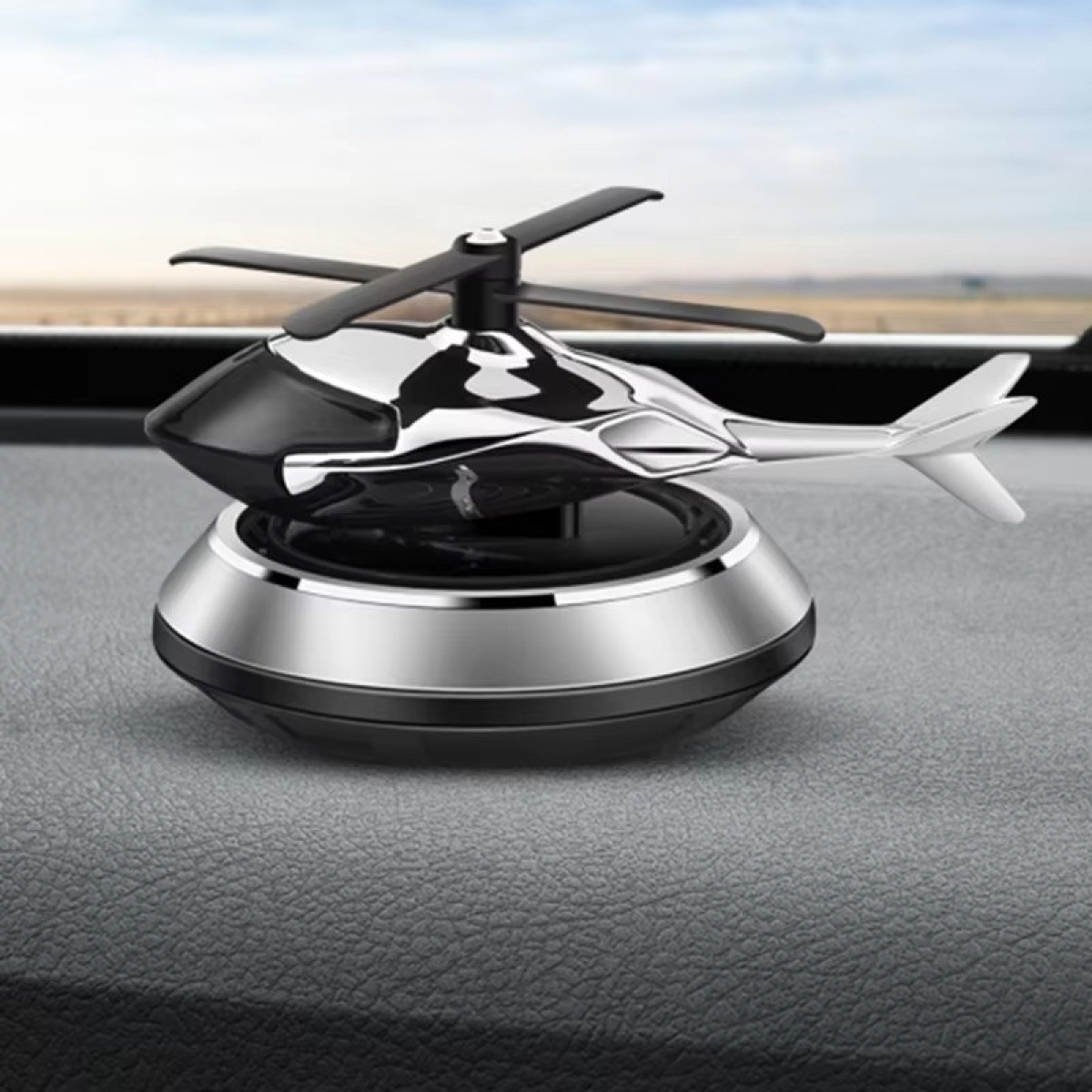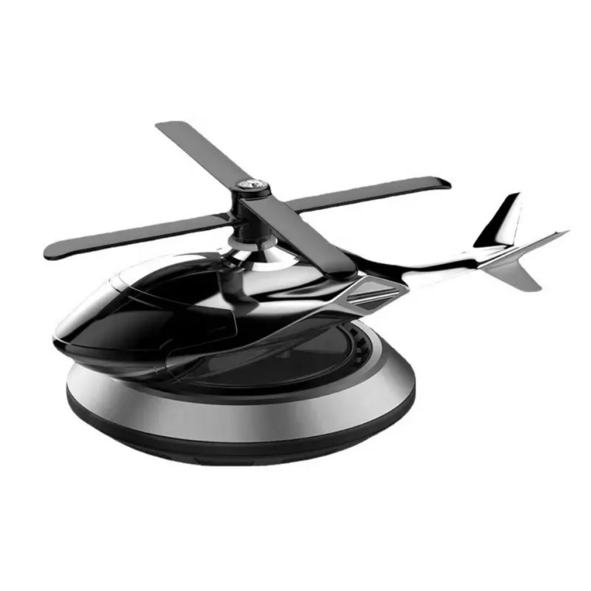 Ароматизатор в авто дифузор у формі вертольота на сонячній батареї, освіжувач багаторазовий сріблястий
