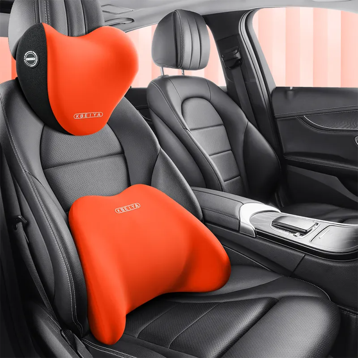 Набір подушок у машину під шию і спину в авто, подушки на підголівник і спинку сидіння, помаранчеві