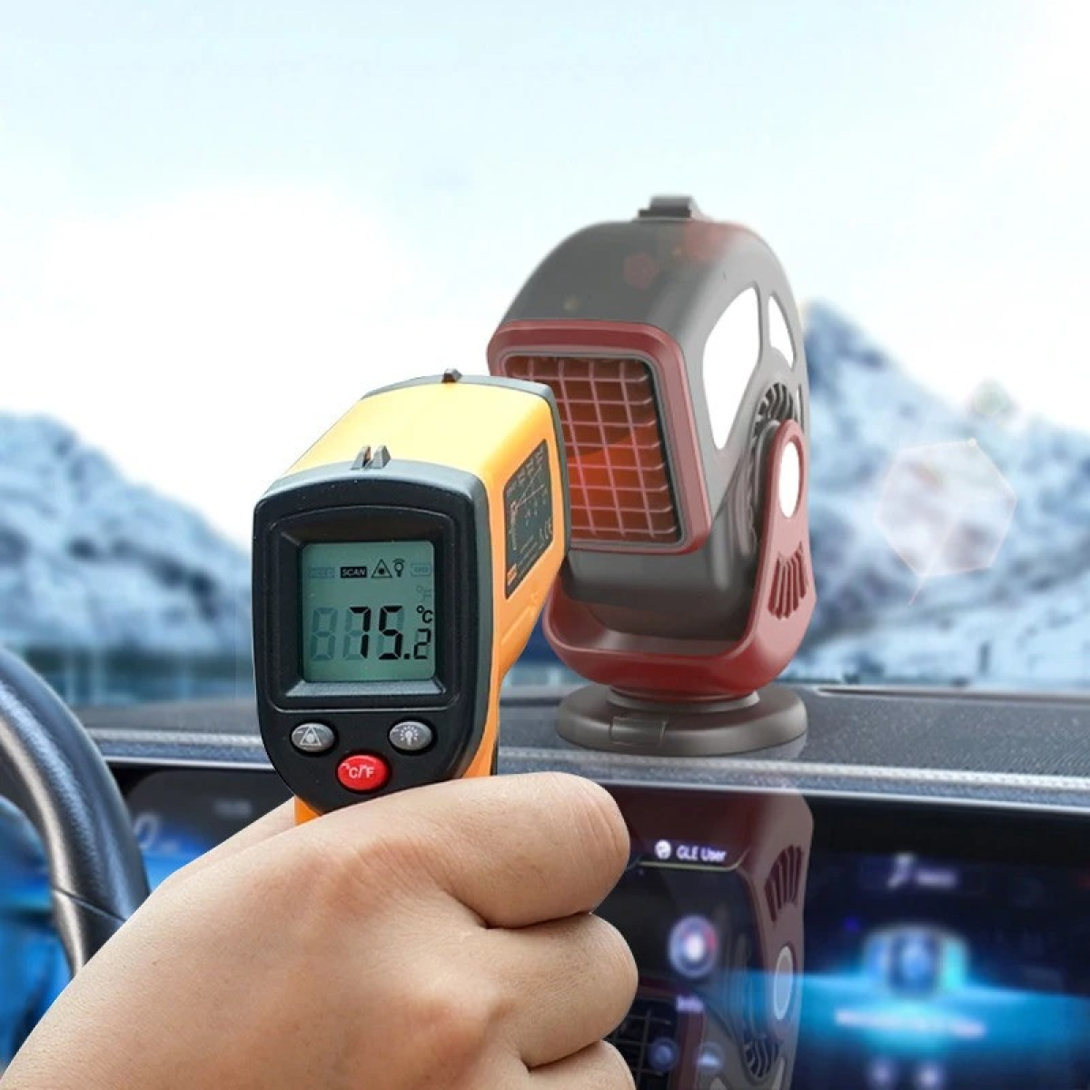 Обігрівач тепловентилятор автомобільний для обдування і обігріву лобового скла в машині, з поворотом на 360°