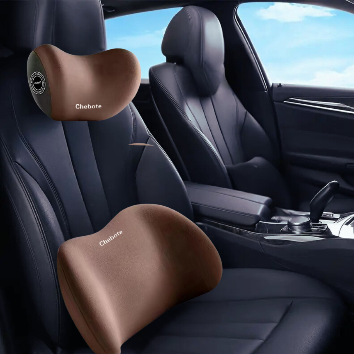 Набір подушок ортопедичних під шию і спину в машину, подушки на підголівник і спинку сидіння, коричневі