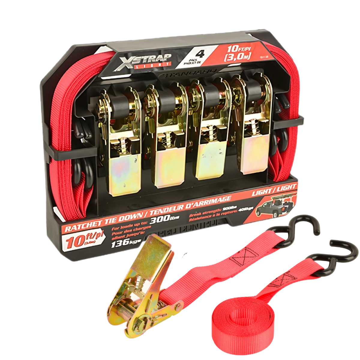 Набір стяжних ременів з храповим механізмом для кріплення вантажу 4 шт. 25 мм х 3 м стропи з навантаженням 136 кг