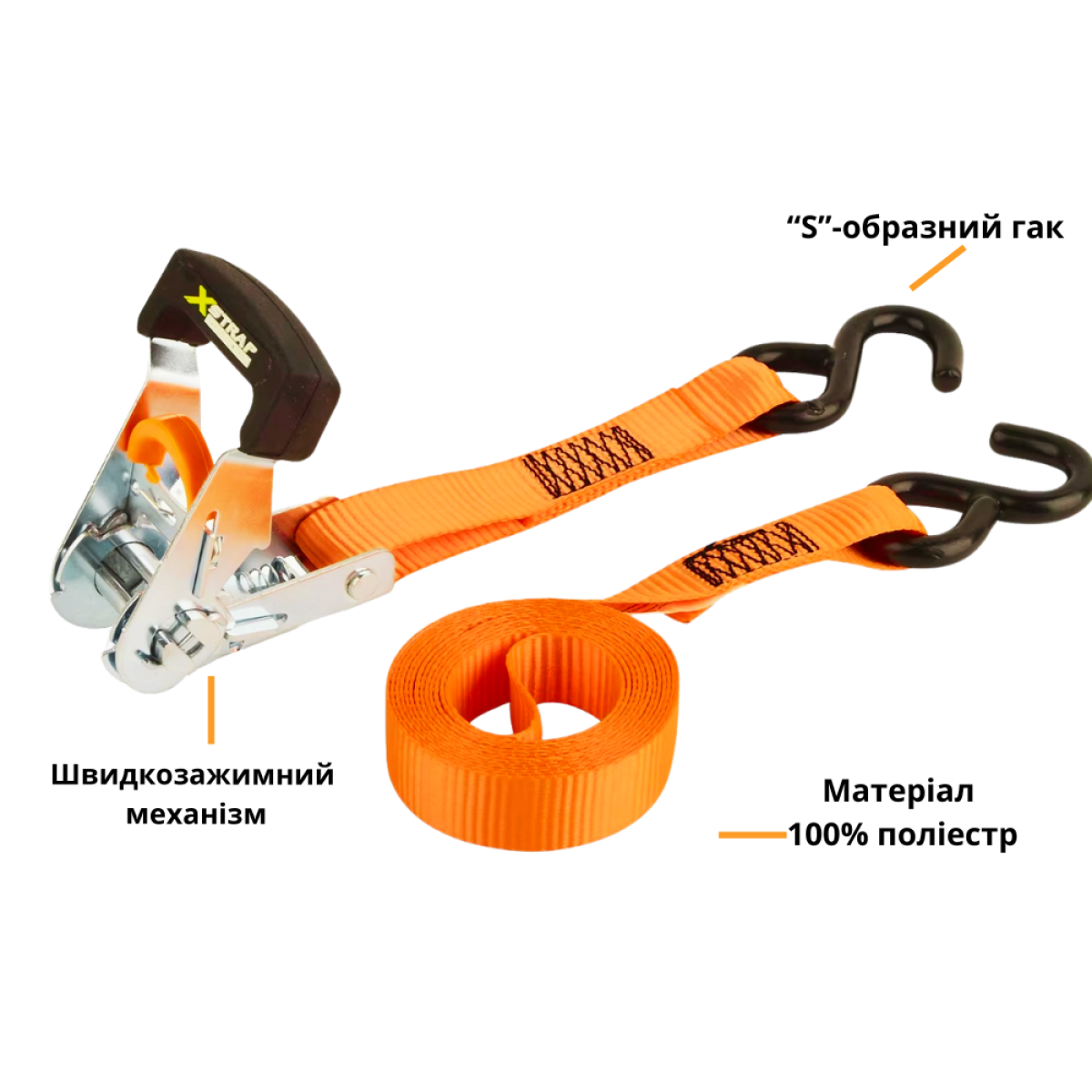 Набір стяжних ременів з храповим механізмом для кріплення вантажу 2 шт. 27 мм х 3,6 м стропи з навантаженням 454 кг