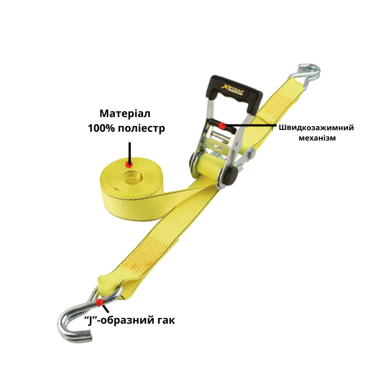 Стяжний ремінь з храповим механізмом для кріплення багажу, стропа, навантаження 756 кг, 1 шт. 38 мм х 4,27 м