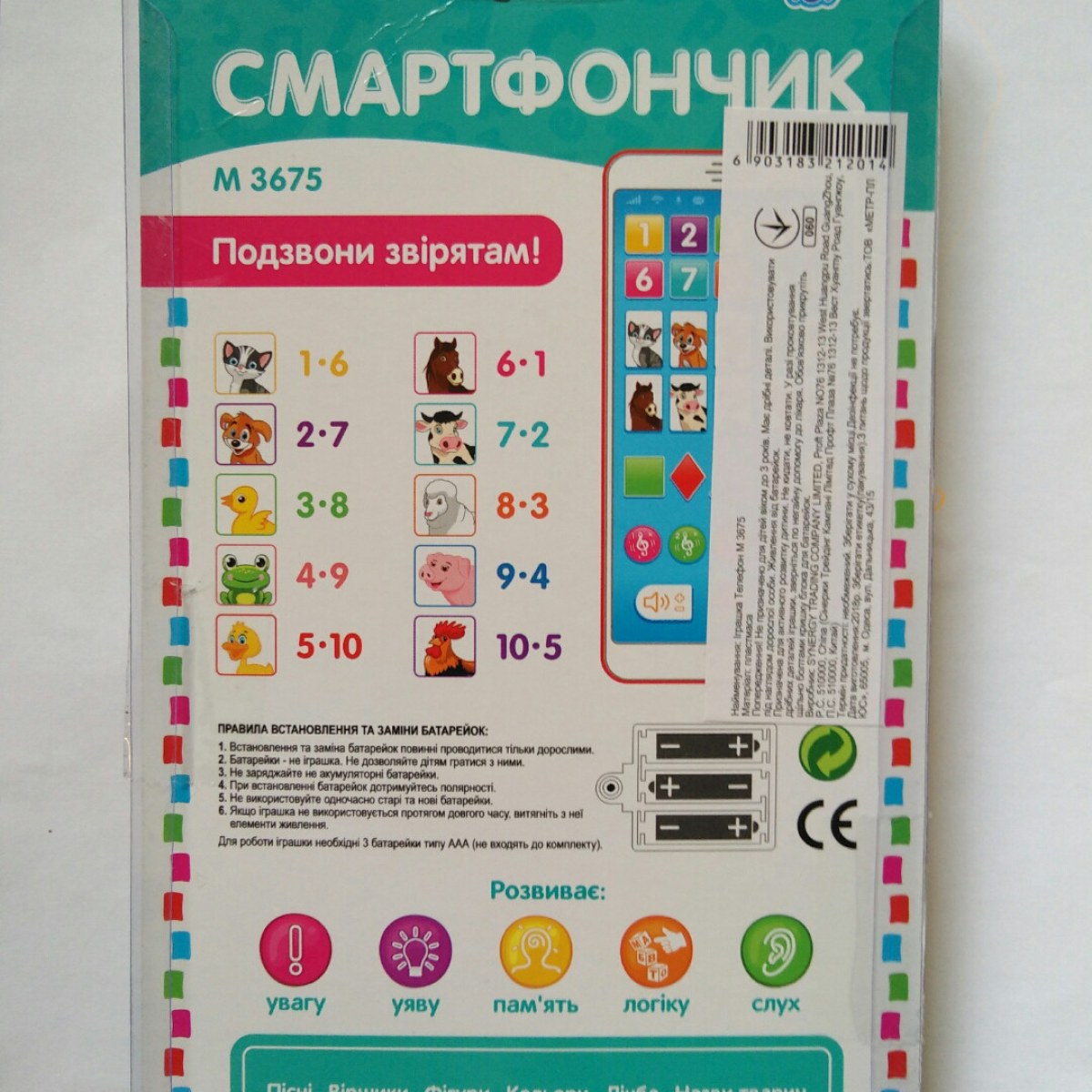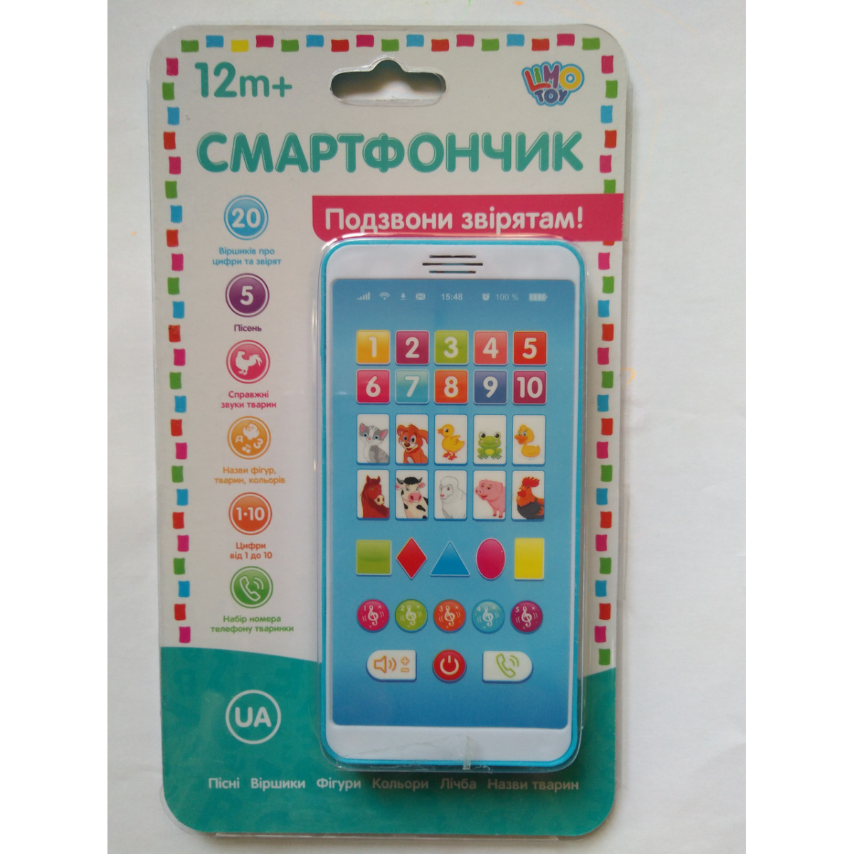 Телефон зателефонує звірятам укр, обуч,цифри, тварин, стихію, стихію-звуку), цв.син.,бат, листи, 13-23-2 см
