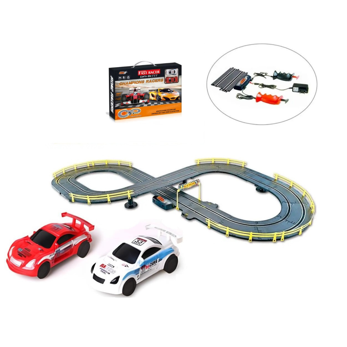 Автотрек на пультах керування CJ-2319351 Пориньте у світ швидкості та адреналіну з автотреком CJ-2319351. З довжиною треку 362 см і масштабом 1:43, цей трек створений для захопливих перегонів, які подарують вам і вашим друзям масу яскравих емоцій. У комплекті йдуть дві машинки, які перебувають під вашим повним контролем за допомогою пультів керування. Простота і зручність у використанні Автотрек працює від мережі 220V, що забезпечує стабільну роботу без необхідності міняти батарейки. Пульти керування на шнурі дають змогу легко керувати машинками, здійснювати повороти і розганятися на прямих ділянках. Такий формат керування ідеально підходить для дітей і дорослих, роблячи процес гри максимально комфортним. Компактність і універсальність Завдяки своїм компактним розмірам упаковки 55.5 х 5.5 х 36 см, автотрек легко зберігати і переносити. Він стане чудовим подарунком для дітей старше 5 років, допомагаючи розвивати координацію рухів, реакцію і концентрацію. Ігровий набір ідеально підходить для веселого сімейного дозвілля або захопливих змагань із друзями.