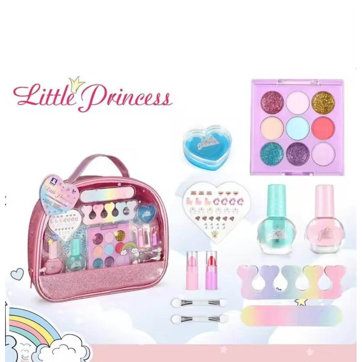 Набір дитячої косметики “Косметичка для макіяжу“ Цей набір дитячої косметики, оформлений у зручній і стильній прозорій косметичці на блискавці з рожевою ручкою, стане ідеальним аксесуаром для юної модниці. Комплект містить усі необхідні елементи для створення яскравого і красивого макіяжу. Все для повноцінного макіяжу У наборі є блиск для губ, два лаки для нігтів, дві помади і дев“ять квадратів компактних тіней для повік, включно з тінями і блиском. Для зручності нанесення макіяжу також передбачені ватні палички, паличка для нігтів, роздільник для пальців і пилка для нігтів. Зручність і стиль в одному наборі Косметичка дає змогу зручно зберігати і переносити всі елементи набору, забезпечуючи порядок і готовність до використання в будь-який момент. Це ідеальний подарунок для дівчинки, яка цікавиться світом краси і хоче навчитися основам макіяжу.