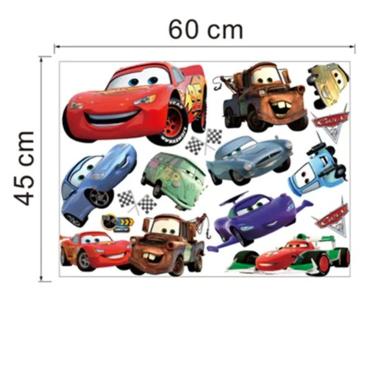 До комплекту входять яскраві та барвисті зображення гоночних автомобілів, включно з Блискавкою Макквіном, Метром та іншими персонажами. Оптимальні розміри наклейок (40х60 см) дають змогу їх зручно розміщувати на будь-якій поверхні, при цьому легко адаптуючи під будь-який інтер“єр. Наліпки прості у використанні завдяки самоклейній основі - просто зніміть захисний шар і приклейте їх на вибране місце.