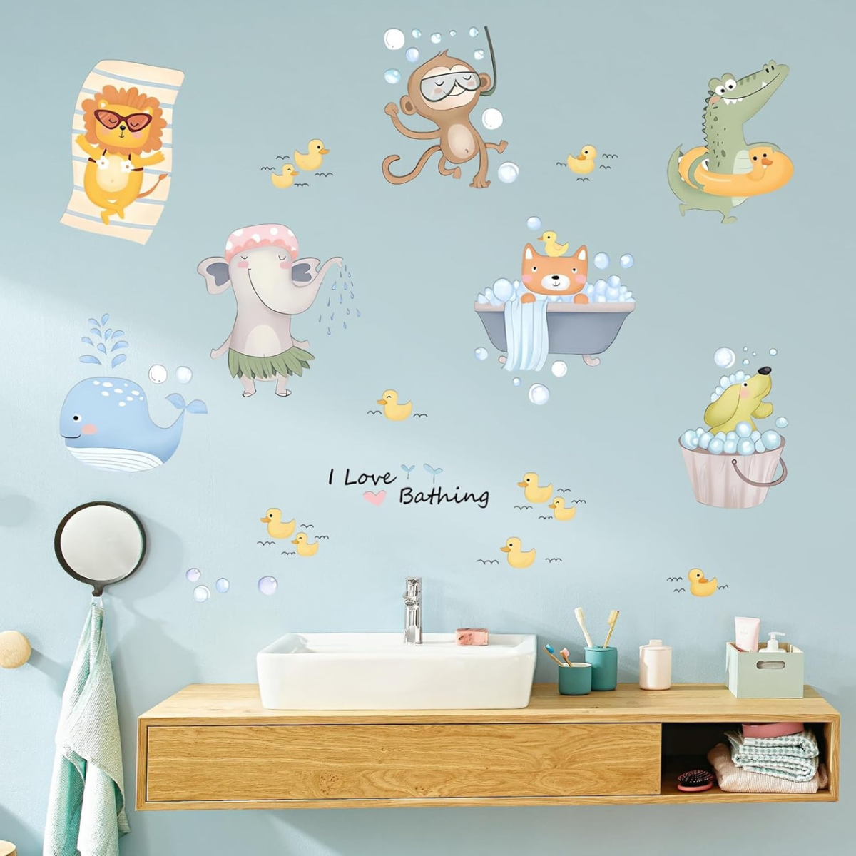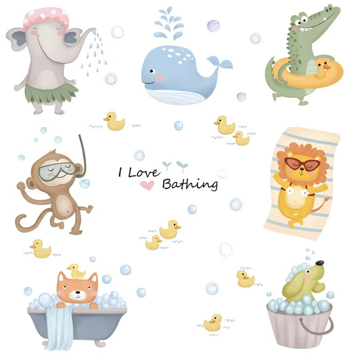 Весела прикраса для ванної кімнати Набір вінілових наклейок «I love bathing» - це ідеальне рішення для яскравого і стильного декору ванної кімнати. Композиція з мультяшних тварин, які приймають водні процедури, додасть веселощів у повсякденні ритуали і зробить їх цікавішими для дітей. З такими наліпками будь-який інтер“єр заграє новими фарбами, створюючи атмосферу затишку і радості. Навчання через гру Ці милі наліпки не тільки прикрасять стіни, а й допоможуть привчити малюків до чистоти та гігієни. Кумедні звірята стануть вірними друзями в процесі вмивання та купання, перетворюючи звичайні процедури на захопливу пригоду. Такий підхід робить виховання корисних звичок легким і приємним як для дітей, так і для батьків. Простота використання та якість Наклейки виготовлені з якісного ПВХ-матеріалу, що робить їх довговічними та безпечними для дітей. Вони легко наклеюються на рівні поверхні та за потреби так само легко знімаються, не залишаючи слідів. Розміри набору - два полотна по 30х90 см, що дає змогу створити цікаві композиції, які пасуватимуть для будь-якої ванної кімнати. Особливості: Розмір набору: 2 полотна 30х90 см. Тематика: мультяшні тварини у ванній. Матеріал: безпечний і довговічний ПВХ. Ідеально підходить для ванної кімнати та дитячої. Простота в установці та видаленні.