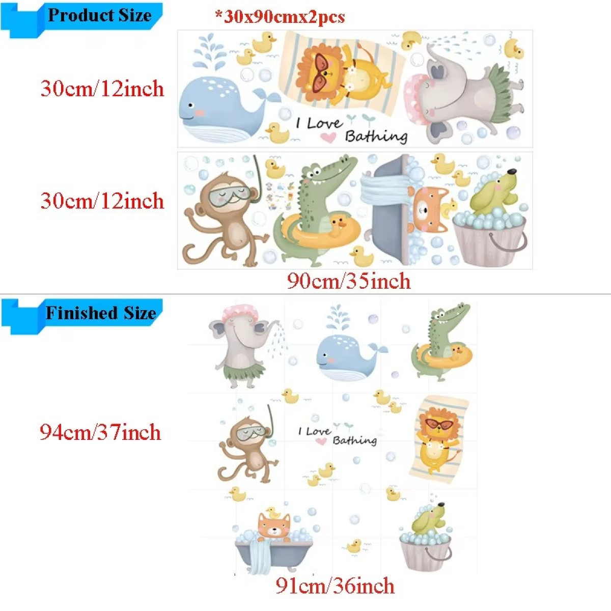 Набір наклейок вінілові на стіну в дитячу кімнату “I love bathing“ 2 полотна розміром 30х90 см