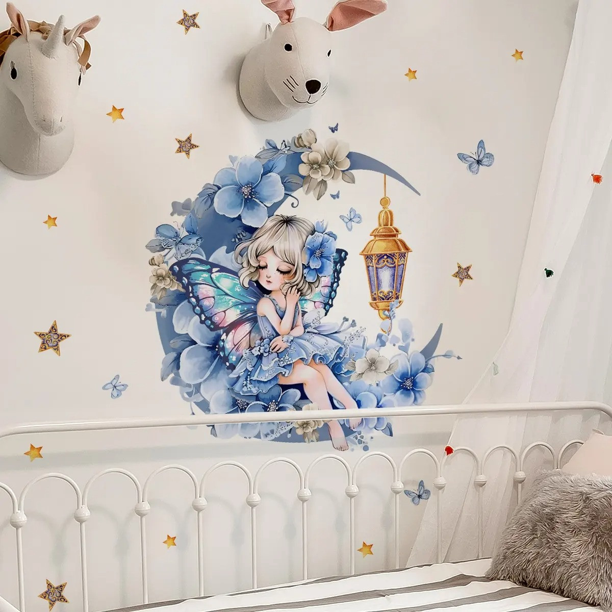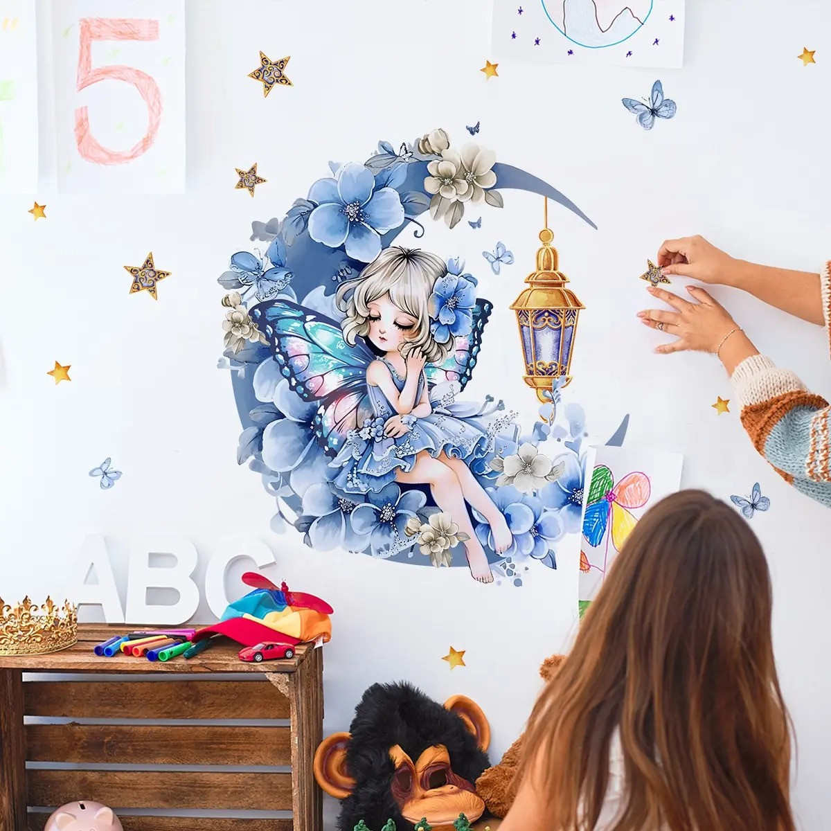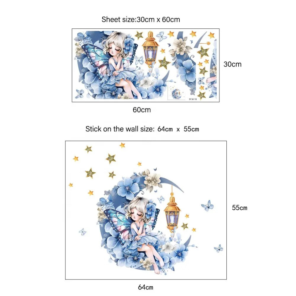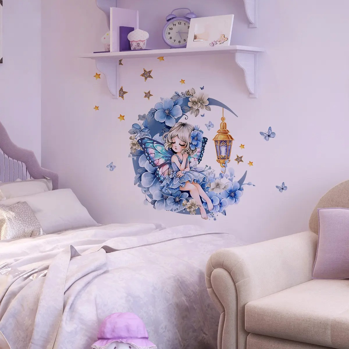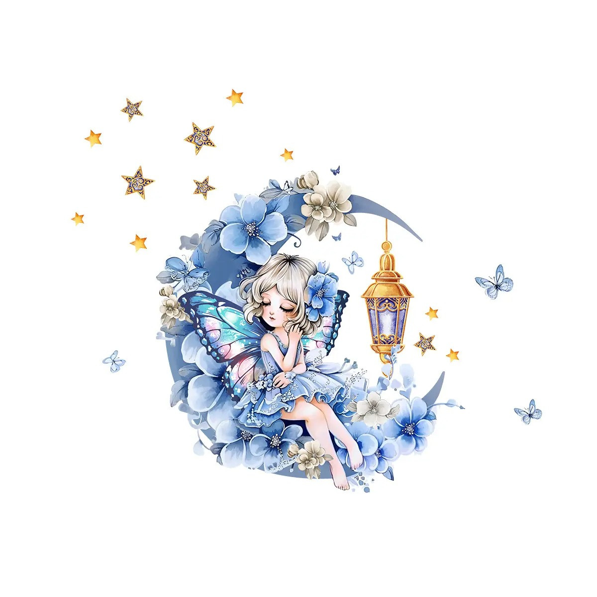 Наклейка декоративна вінілова інтер“єрна в кімнату на стіну «Фея на Місяці» 30х60 см