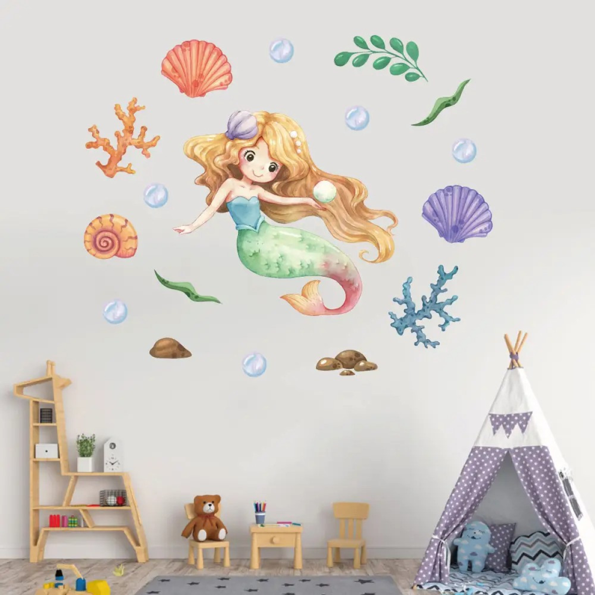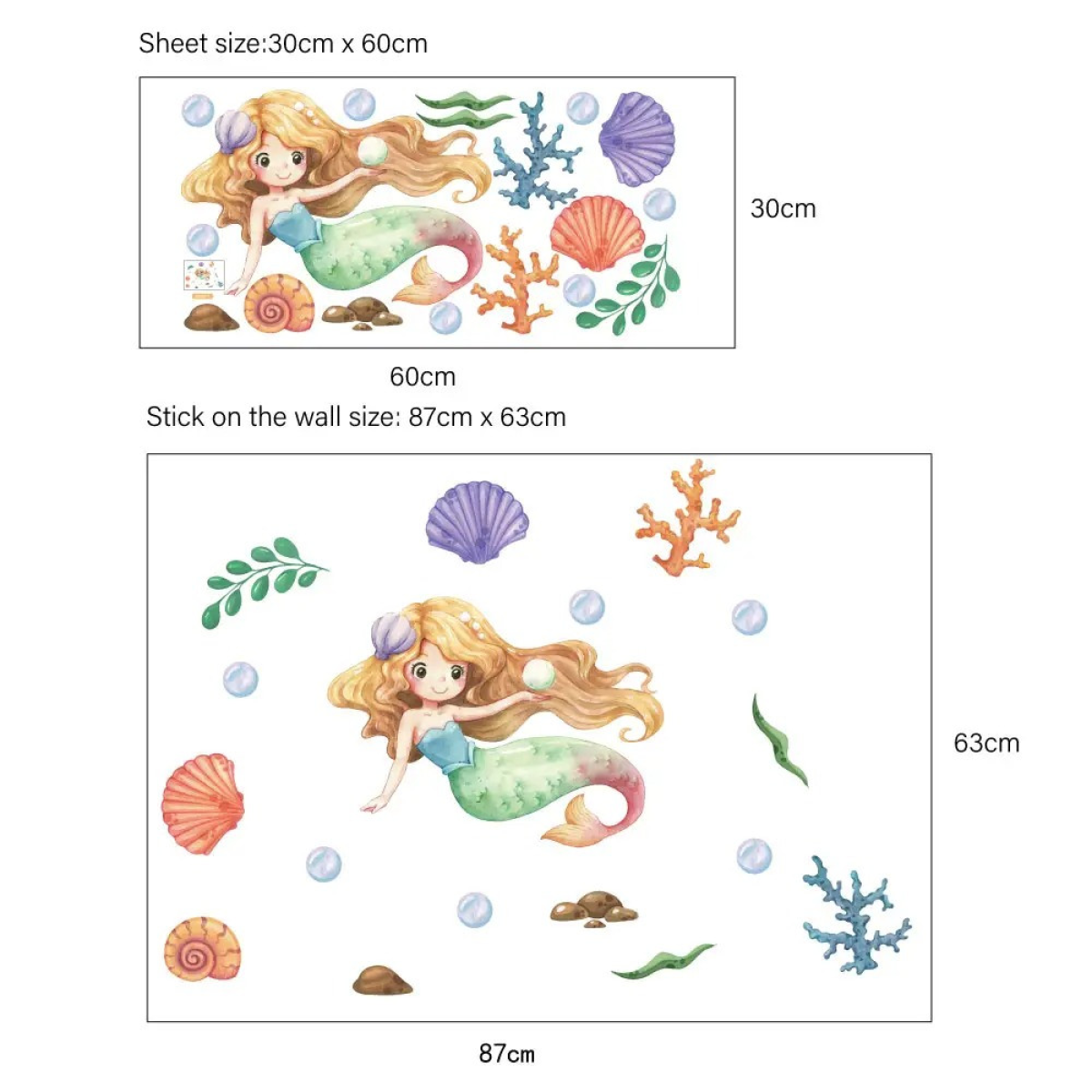 Наклейка вінілова «Аріель» декоративна в дитячу кімнату на стіну «Аріель» для дівчаток 30х60 см