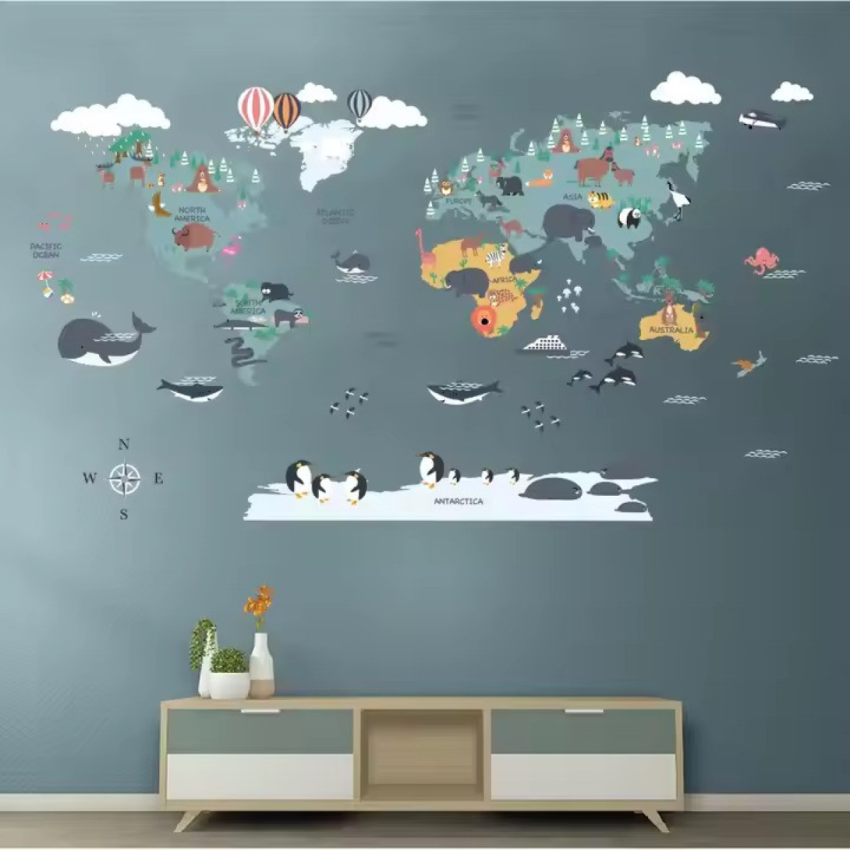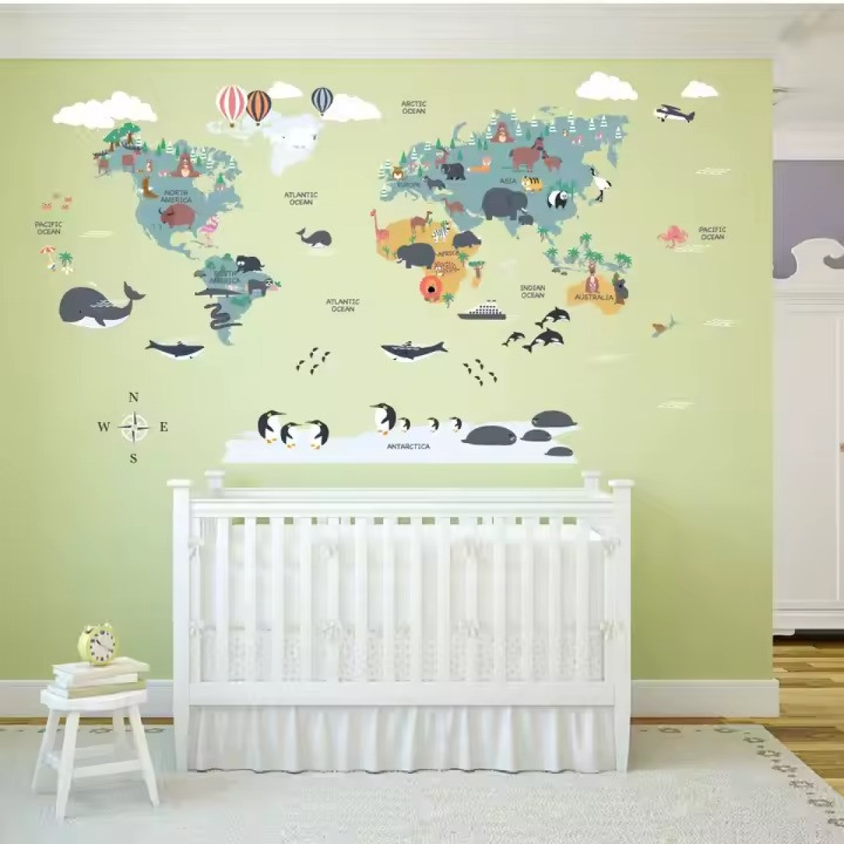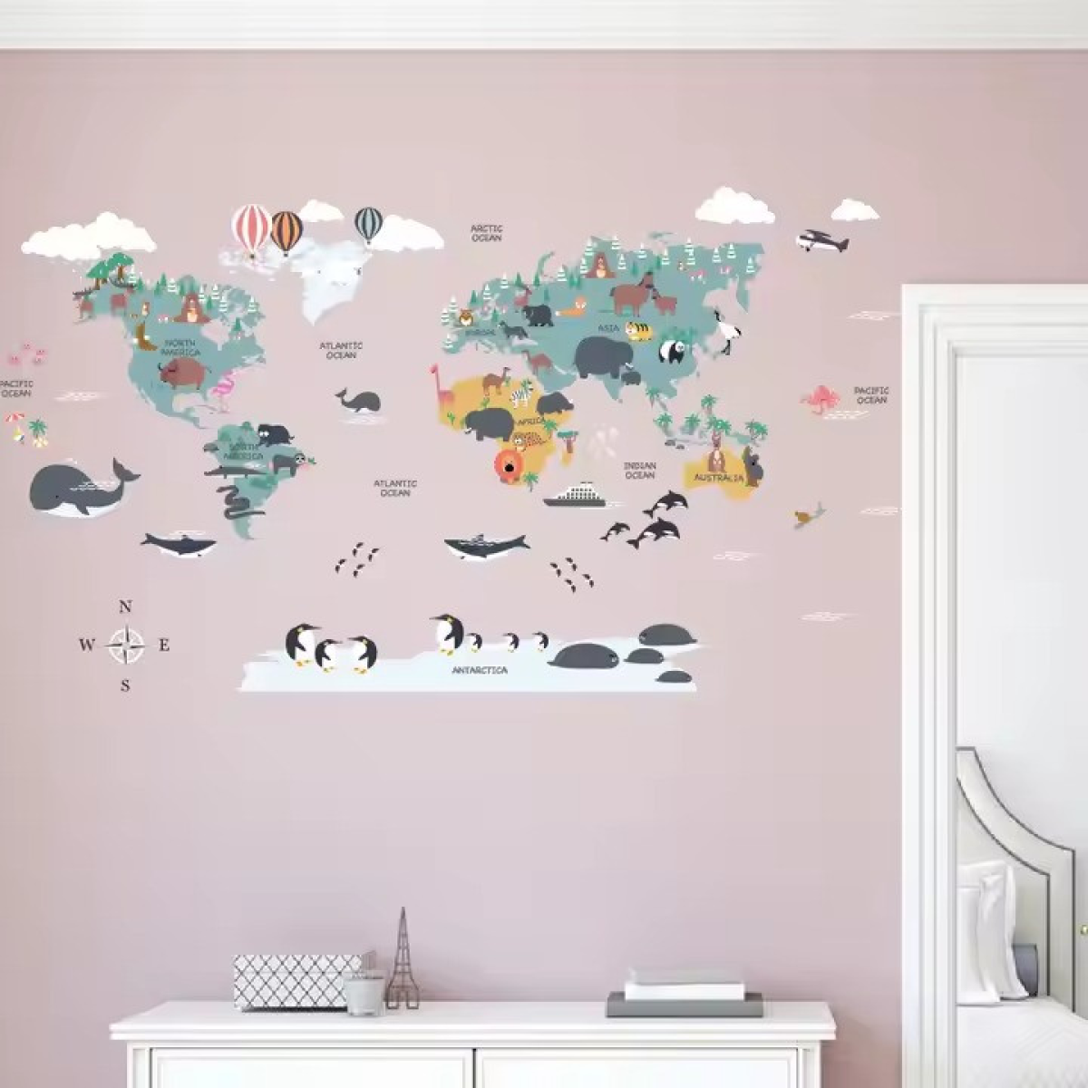 Набір вінілових наліпок “Карта Світу“ декоративні на стіну в дитячу кімнату два полотна розміром 30х90 см