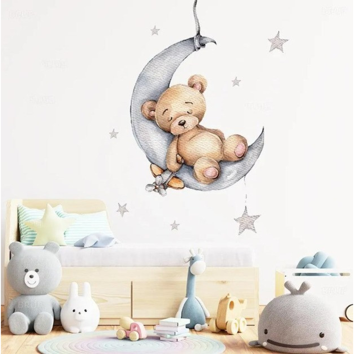 Чарівний сон для вашого малюка Створіть атмосферу затишку і казки в дитячій кімнаті за допомогою вінілової наклейки «Спляче ведмежа». Чарівне плюшеве ведмежа, заколисане м“яким світлом зірок, мирно спить, гойдаючись на місяці. Такий милий дизайн подарує вашій дитині відчуття тепла і спокою, сприяючи хорошому сну і радісним сновидінням. Ідеальне доповнення інтер“єру Ця декоративна наклейка стане яскравим акцентом у кімнаті, доповнюючи будь-який стиль оформлення дитячої. Розмір 30х90 см дозволяє ідеально розмістити її на стіні, а простота встановлення дає змогу вам самостійно створити затишний куточок для дитини. Сценка із зоряним небом і сплячим ведмежам додає кімнаті нотки чарівництва. Якість і практичність Наклейка виготовлена з міцного ПВХ-матеріалу, який легко клеїться на будь-яку гладку поверхню. Вона стійка до вицвітання, а також легко видаляється, не залишаючи слідів, що робить її ідеальним вибором для декору. Особливості товару: Плюшеве ведмежа на місяці серед зірок; Розмір 30х90 см; Матеріал ПВХ: довговічний і безпечний.