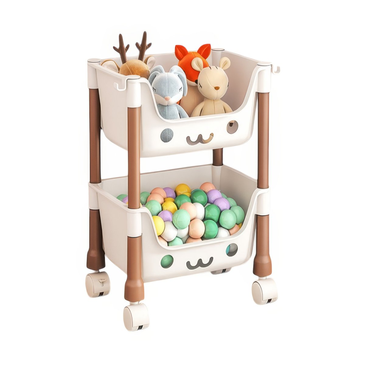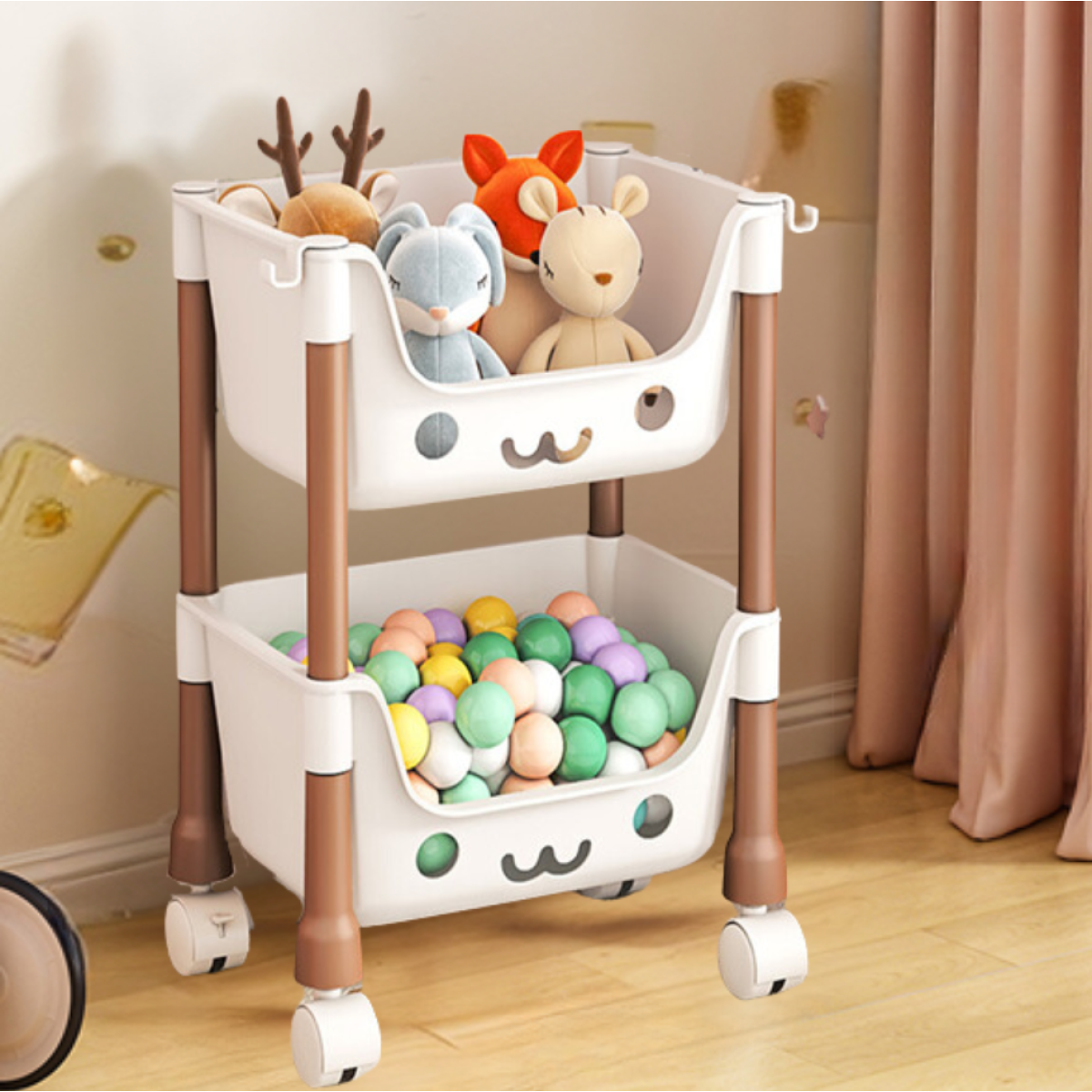 Стелаж для дитячої на колесах з контейнерами, органайзер для іграшок, біло-коричневий, 38×28×19см