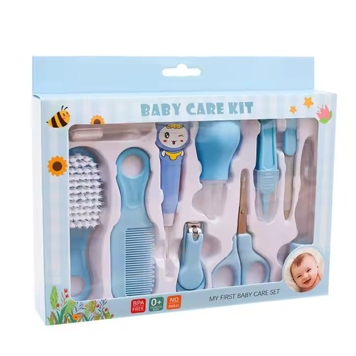 Подбайте про ніжну шкіру та гігієну вашого малюка з універсальним набором для догляду за дітьми. До комплекту входять 10 необхідних аксесуарів, які ідеально підійдуть для повсякденного догляду за новонародженими та немовлятами. Всі інструменти розроблені з урахуванням безпеки та комфорту, щоб зробити процес догляду простим і приємним. До складу набору входять манікюрні ножиці з круглими закінченнями, міні-кліппер і пилка для акуратного догляду за нігтями малюка, м“яка щітка і гребінець для першого волосся, а також аспіратор для носика і пінцет для дбайливого очищення. Зручна піпетка з мірними позначками до 5 мл дасть змогу точно дозувати ліки або рідини, а вухочистка з підсвічуванням забезпечить безпечний догляд за вухами. Прорізувач-масажер полегшить період появи перших зубів, допомагаючи малюкові справлятися з неприємними відчуттями. Компактний розмір набору (24х20х3.5 см) і вага всього 206 г роблять його зручним для зберігання і транспортування. Блакитний колір додає естетичності, а міцні та безпечні матеріали гарантують довговічність використання. Особливості товару: 10 гігієнічних аксесуарів для повноцінного догляду за дитиною. Компактний розмір і вага: 24х20х3.5 см, 206 г. Включає інструменти для догляду за нігтями, волоссям, вушками і зубками.