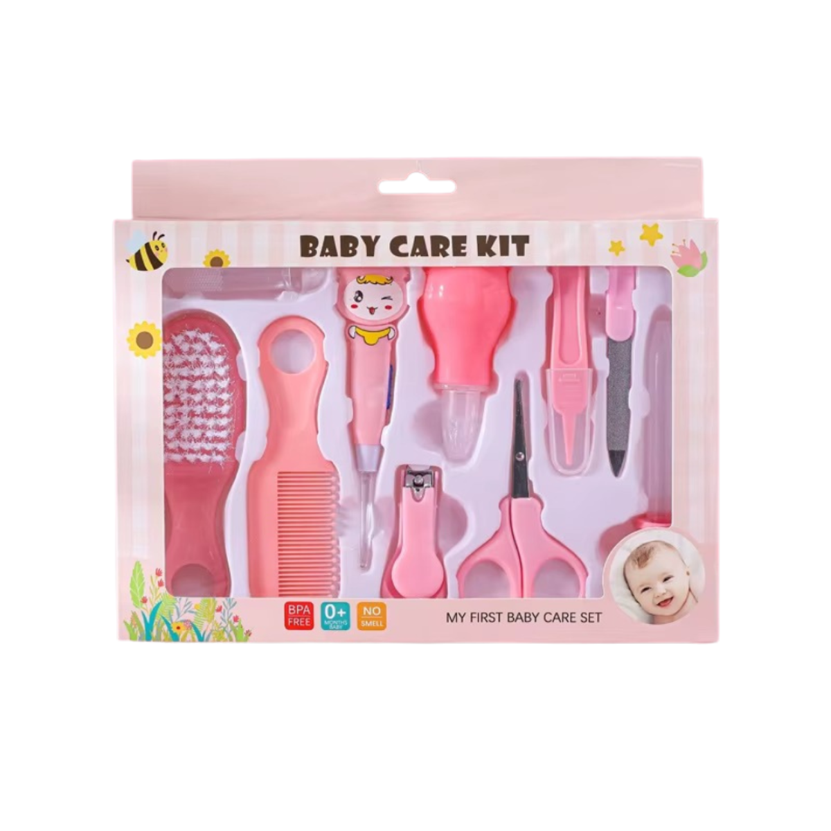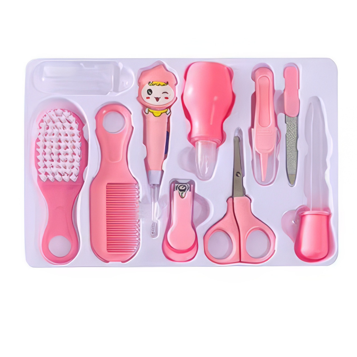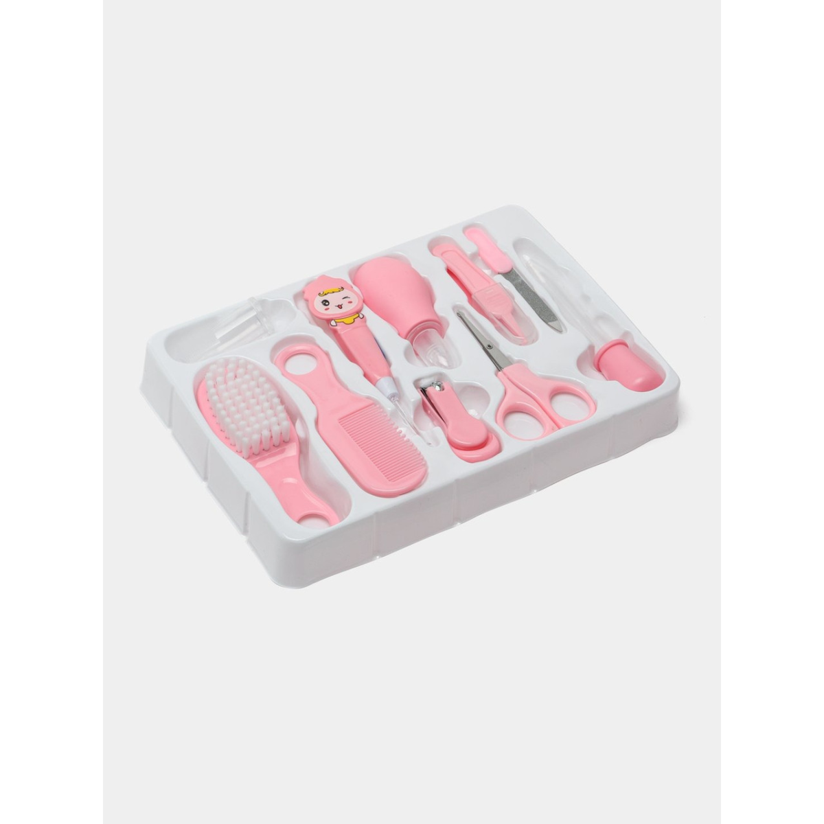 Набір для новонароджених, манікюрний 10 предметів: гребінець, ножиці, кусачки, пилочка, піпетка для дітей, рожевий