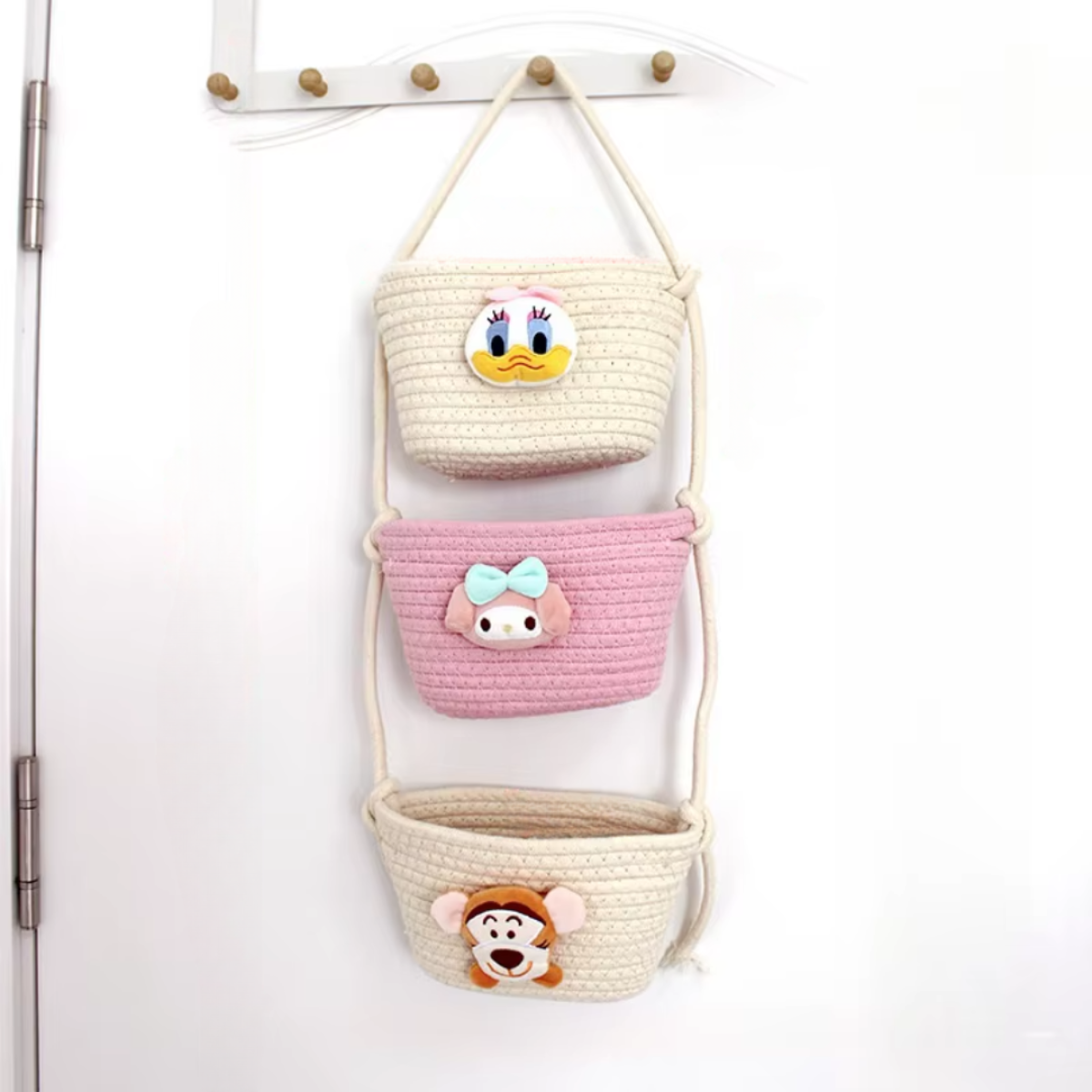 Навісний органайзер для дітей | Плетений кошик для зберігання іграшок та аксесуарів, бежевий