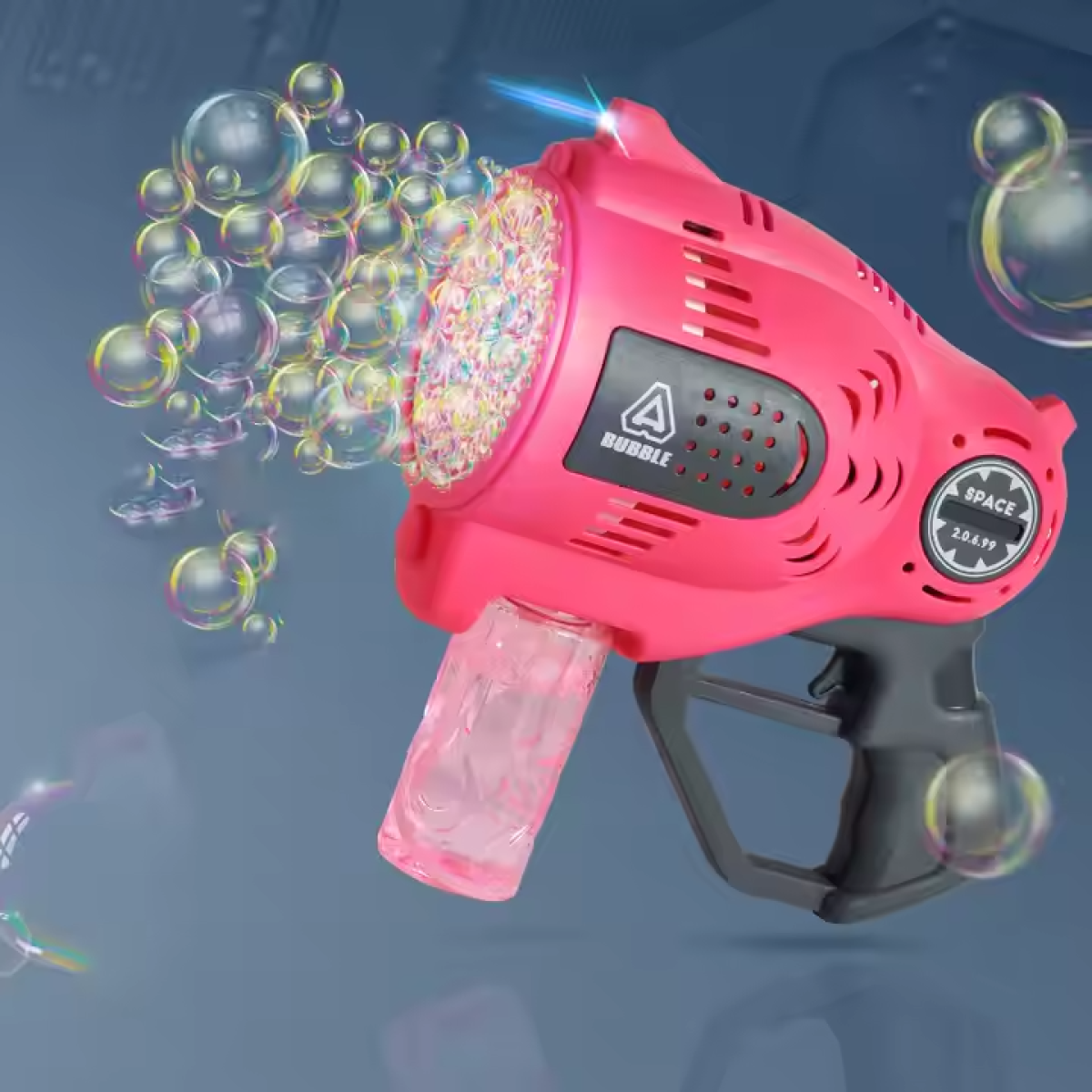 Пістолет для мильних бульбашок для дітей, генератор мильних бульбашок з підсвічуванням на акумуляторі, рожевий