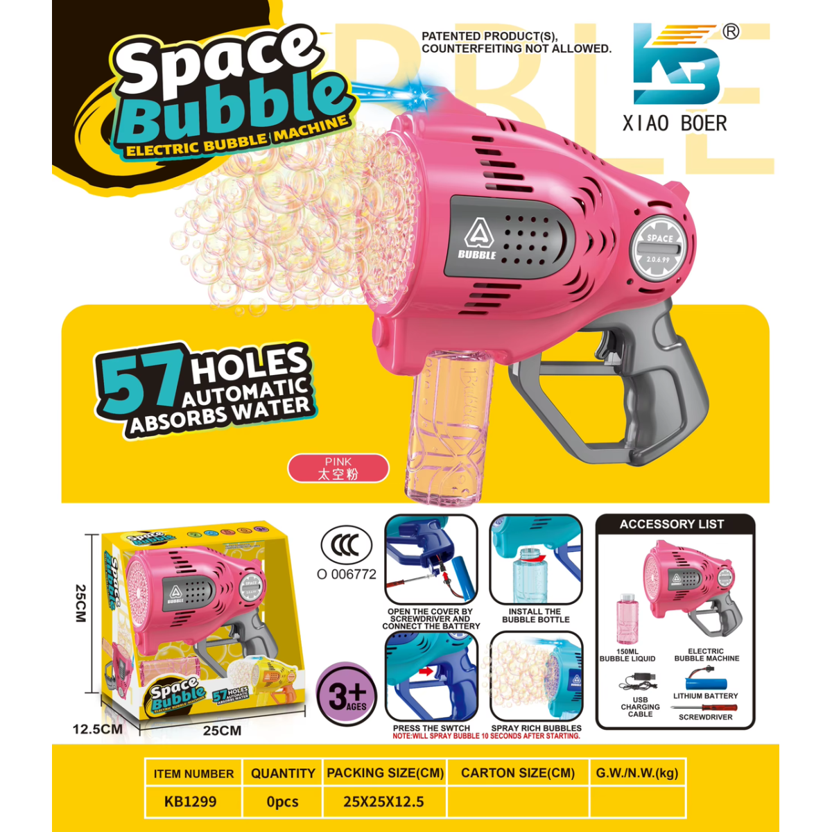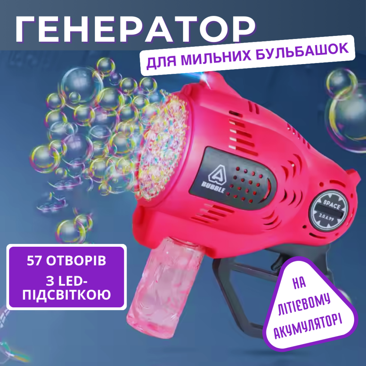 Пістолет для мильних бульбашок - це захоплива іграшка, яка подарує радість дітям і дорослим. Оснащений 57 отворами, він здатний випускати тисячі бульбашок за хвилину, створюючи барвисте шоу з LED-підсвіткою. Іграшка працює від Li-акумулятора, що перезаряджається, що забезпечує зручність використання і багаторазове повторне застосування. Досить налити спеціальний розчин у резервуар, натиснути кнопку - і потік блискучих бульбашок наповнить простір. Іграшка абсолютно безпечна для дітей - не подразнює шкіру, не містить токсичних речовин і проста у використанні. Ідеально підійде для заходів у приміщенні та на відкритому повітрі: дні народження, весілля, вечірки тощо. Така іграшка принесе масу задоволення та емоцій як дітям, так і дорослим. Характеристики: Комплектація: пістолет 1шт., пляшка з рідиною (150 мл) 1шт., перезаряджається Li-акумулятор 1шт., зарядний кабель USB 1шт., батарея типу AA 1 шт. Кількість отворів: 57 LED-підсвічування: є Матеріал: безпечний пластик Розміри іграшки: 26×23×12см
