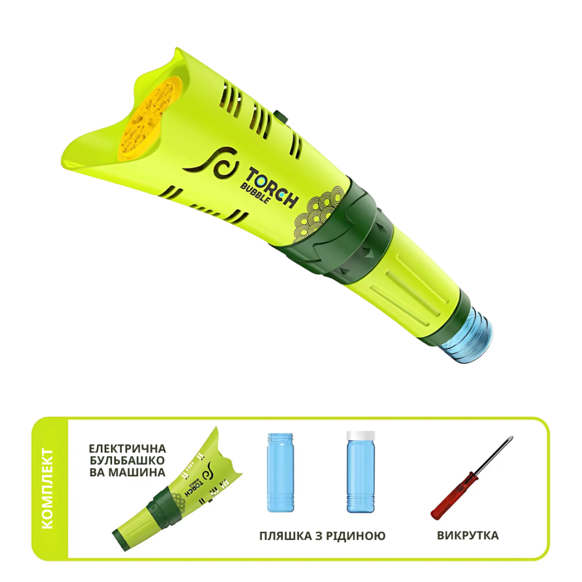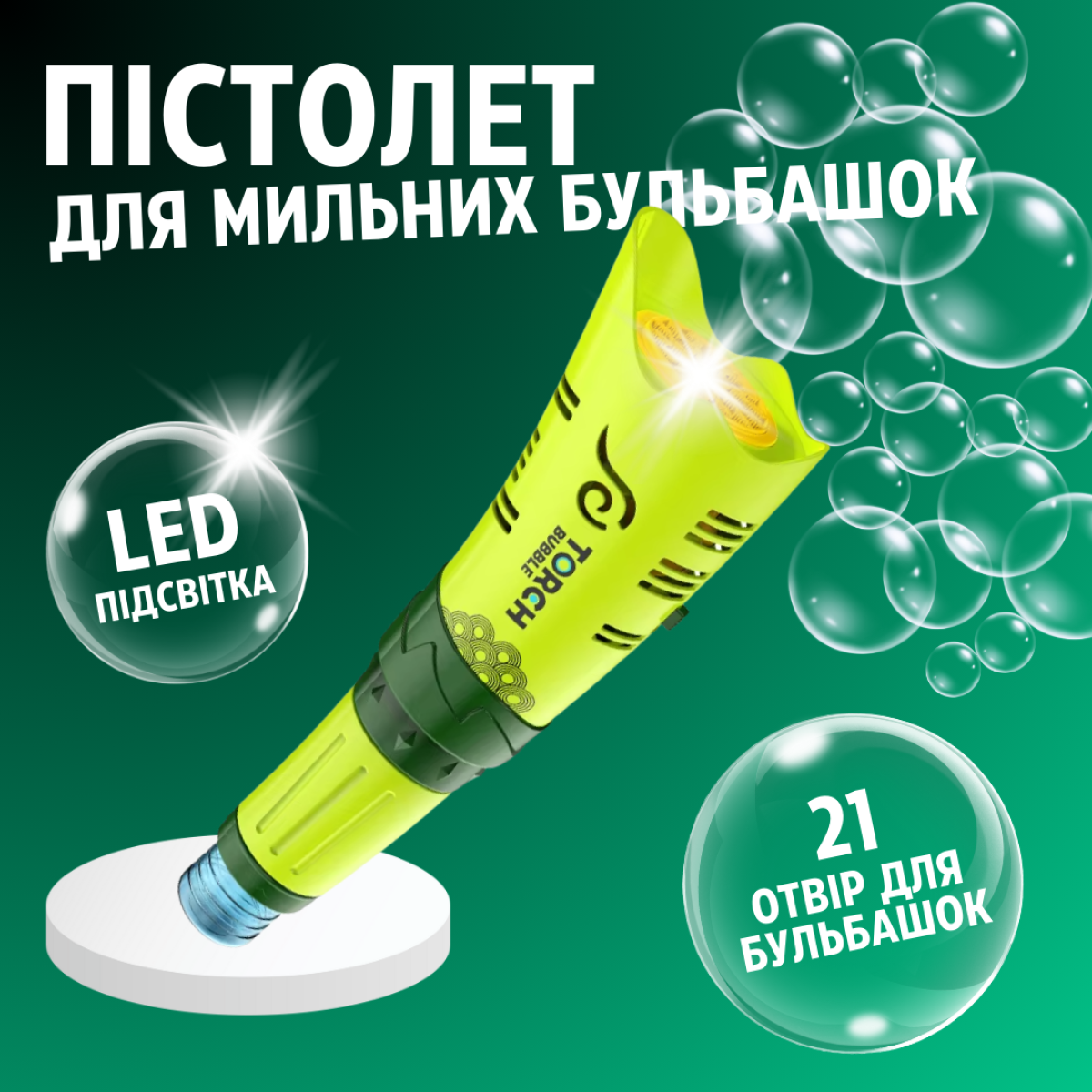 Генератор мильних бульбашок, пістолет для мильних бульбашок для дітей на батарейках з підсвічуванням зелений
