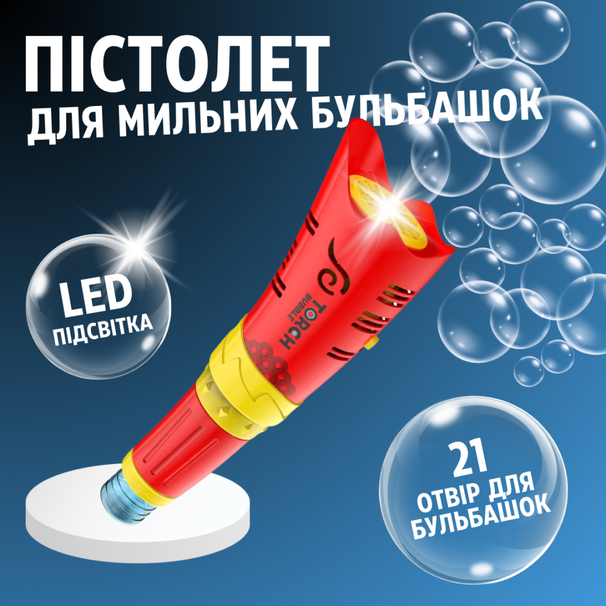 Генератор мильних бульбашок, пістолет для мильних бульбашок для дітей на батарейках з підсвічуванням червоний