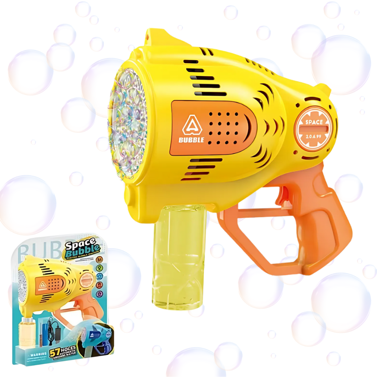 Мильні бульбашки для дітей, генератор мильних бульбашок, пістолет для мильних бульбашок на акумуляторі, жовтий