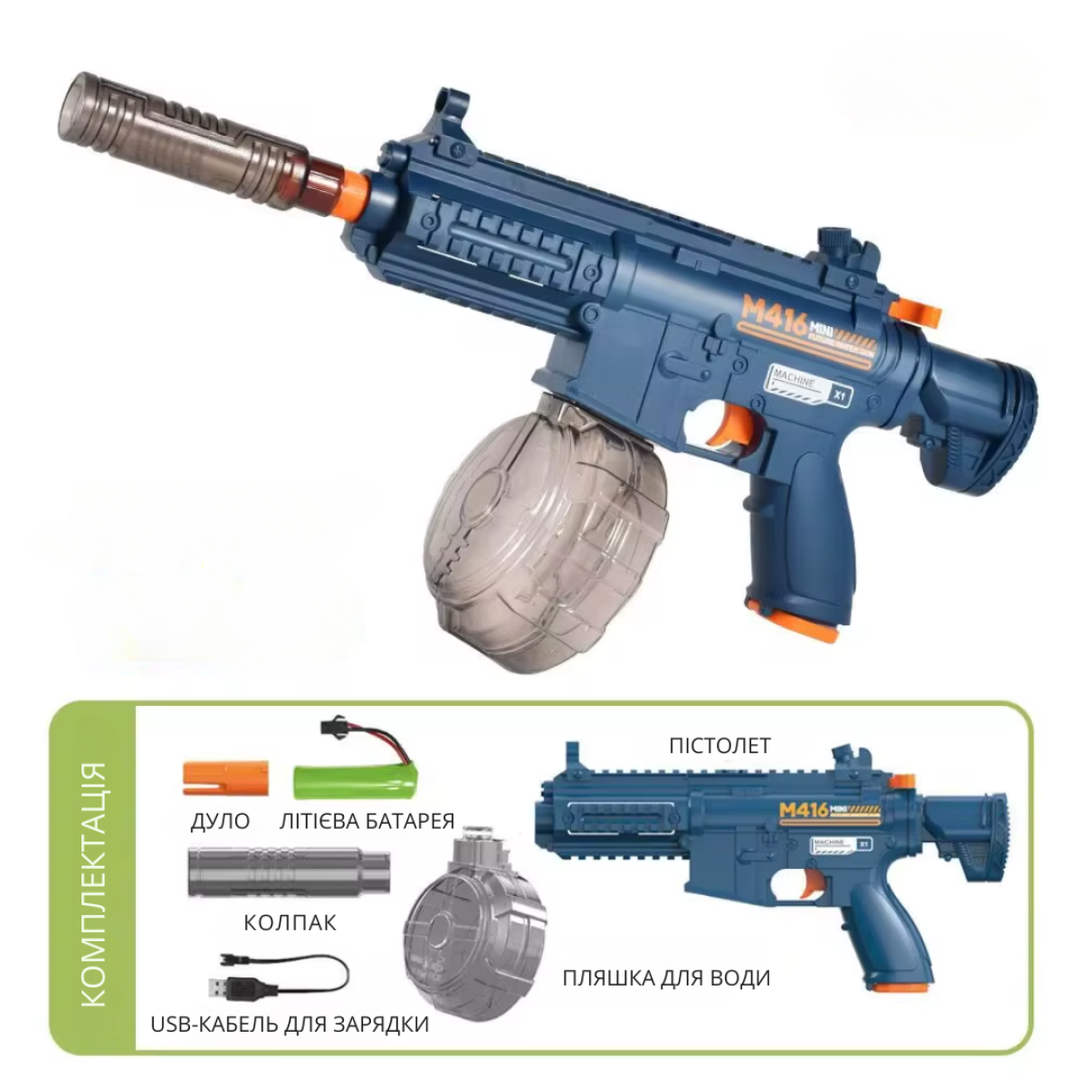 Водний пістолет для дітей, іграшковий водний автомат M416 на акумуляторі, електричний бластер, синій