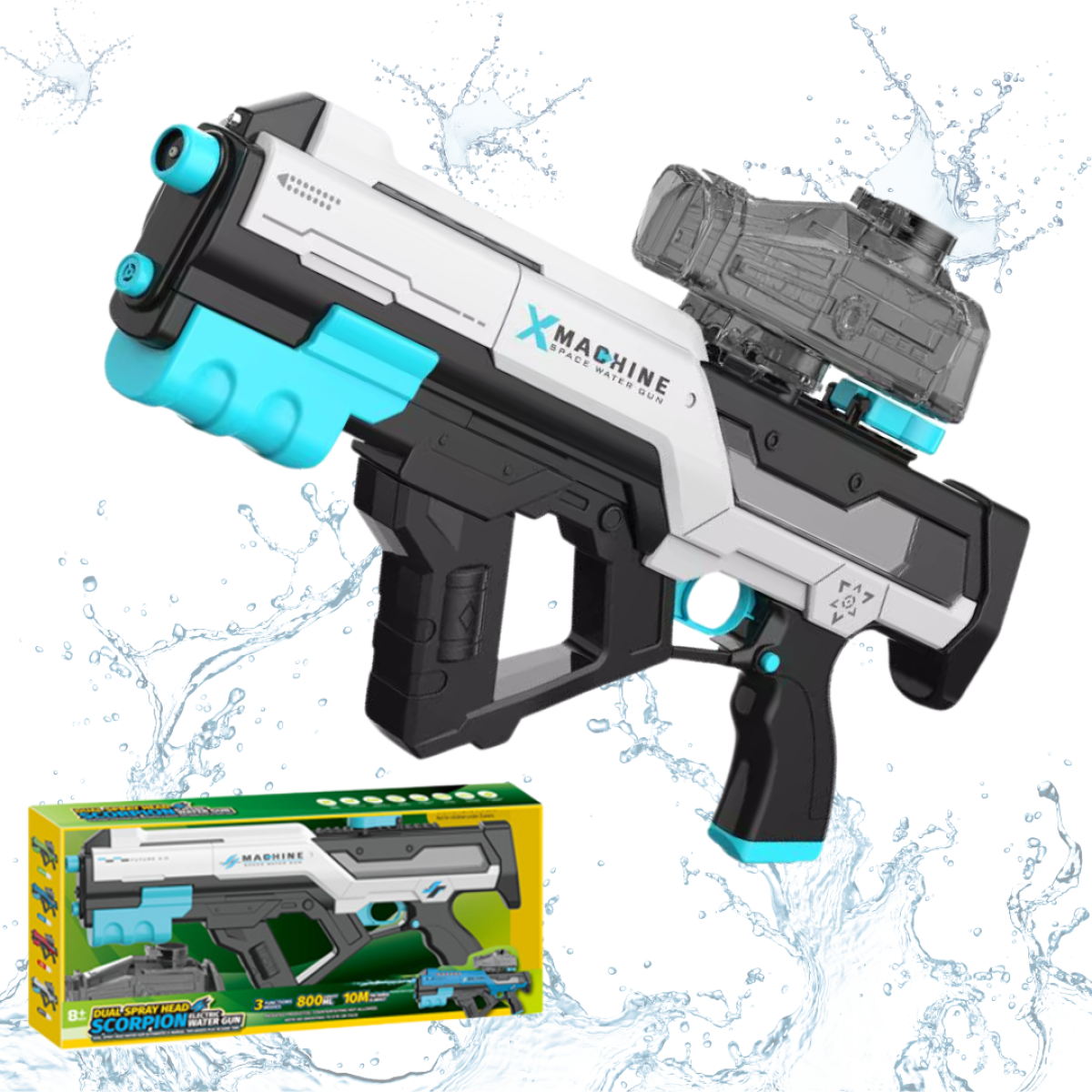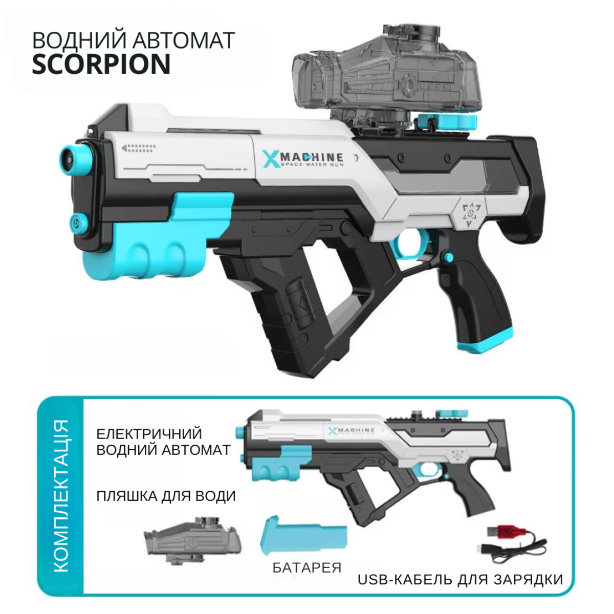 Водний пістолет для дітей, електричний водний автомат Скорпіон з автоматичним закачуванням води, білий