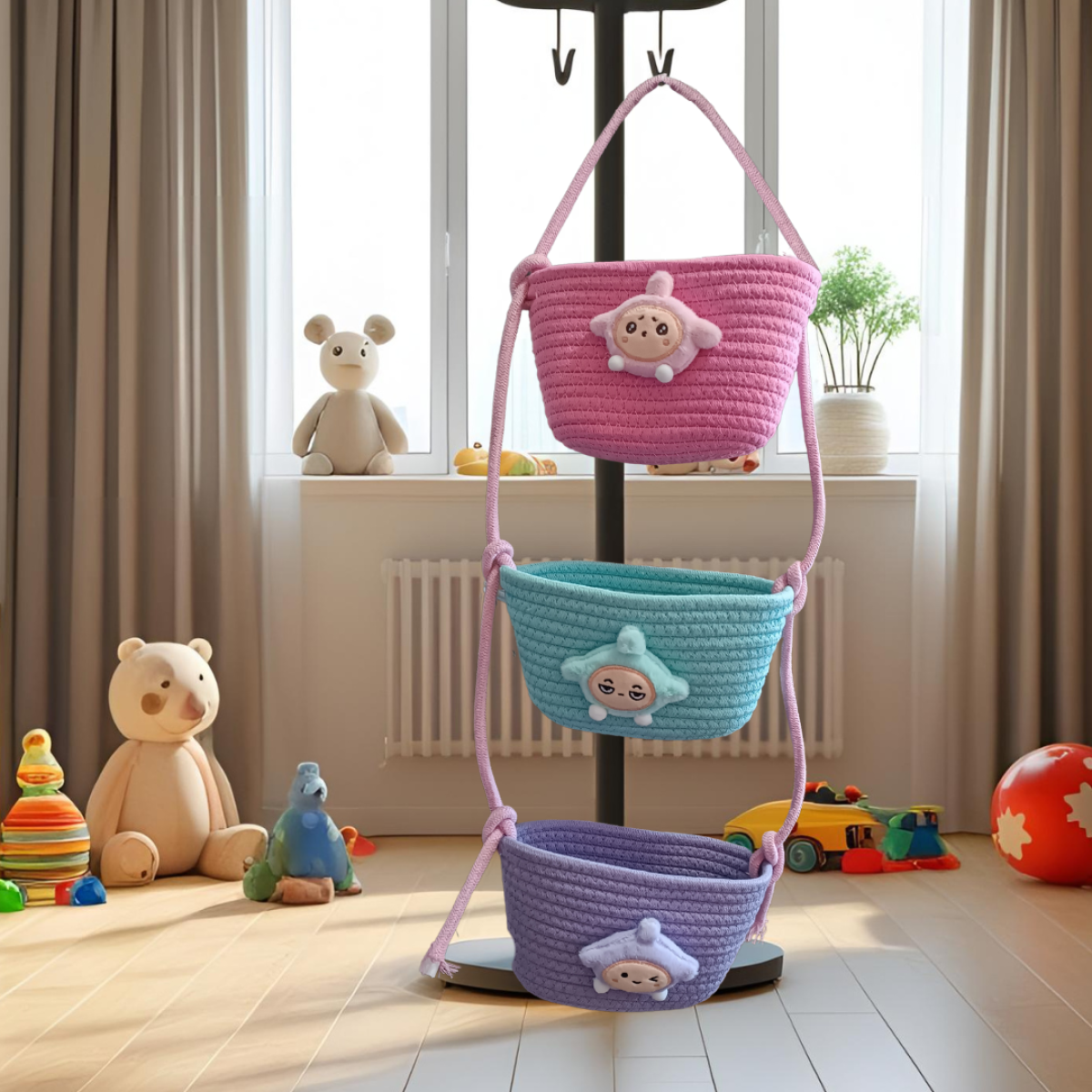Навісний органайзер для дітей | Плетений кошик для зберігання іграшок, аксесуарів в дитячу кімнату, Зірка