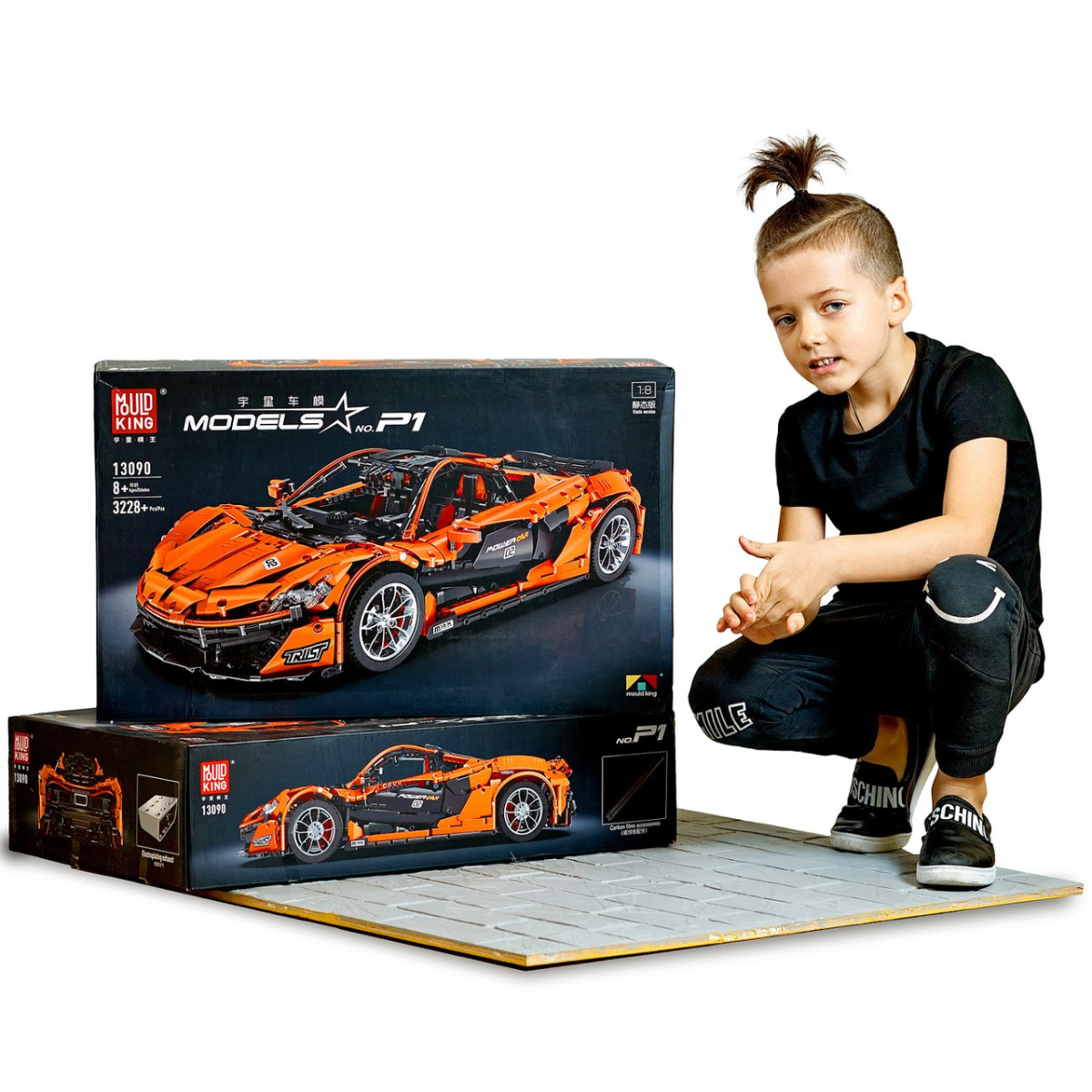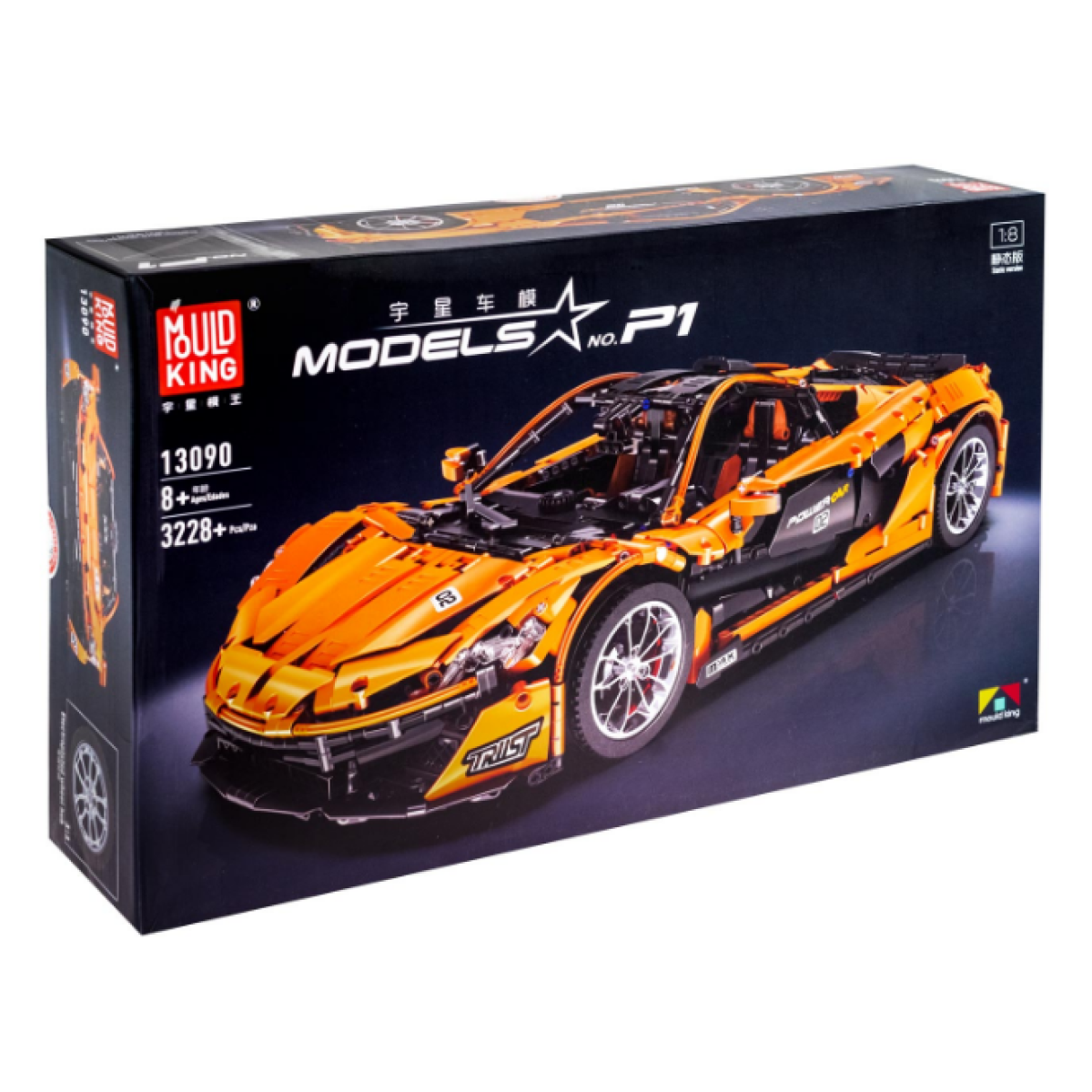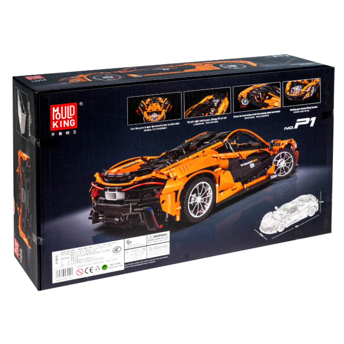 Конструктор із серії технік, Макларен P1 від фірми Моулд-Кінг. Конструктор являє собою унікальний англійський гіперкар з безліччю механізмів. Зовнішність нового автомобіля схожа на справжній «концепт-кар» — масивний передній бампер, потужна вихлопна труба, карбон—гальма, все це надає автомобілю величезну впевненість на дорозі і дозволяє розвинути максимальну швидкість. Гіперкар дивує кожної рисою кузова. Особливості цього гіперкара: • потужний передня система амортизації; • масивна вихлопна труба ззаду; • карбоно-керамічні гальма. Гіперкар вражає як лініями кузова, так і внутрішньою начинкою. Завдяки всьому цьому автомобіль володіє дуже високими показниками маневреності і стійкості на дорозі, а також розвиває величезні швидкості за короткий проміжок часу. Тепер у вас є можливість поповнити колекцію черговим спорткаром.