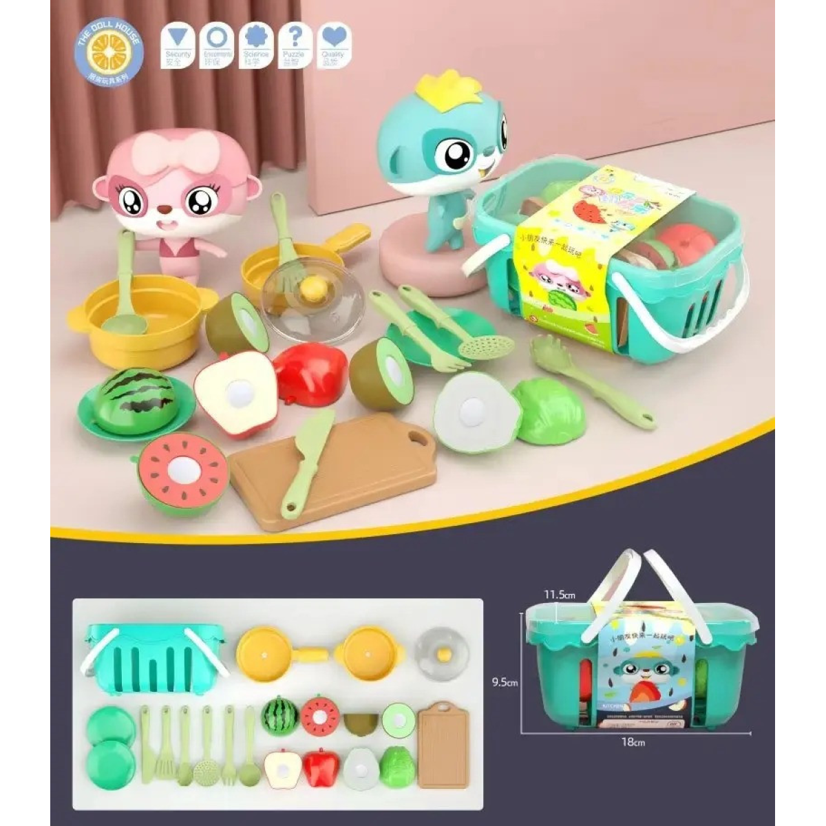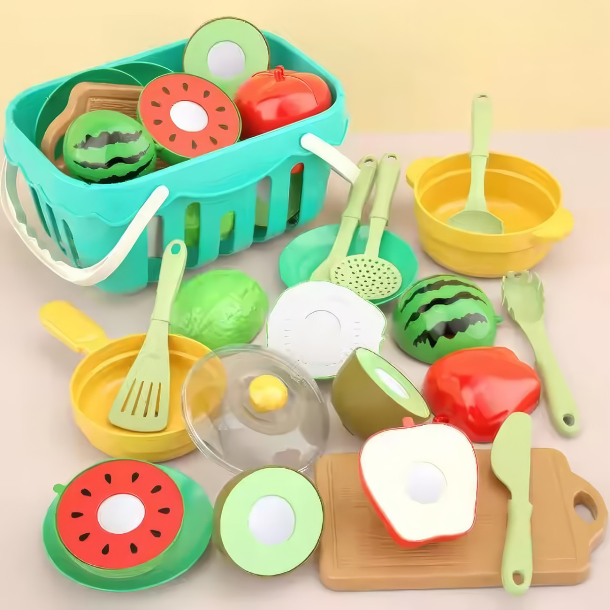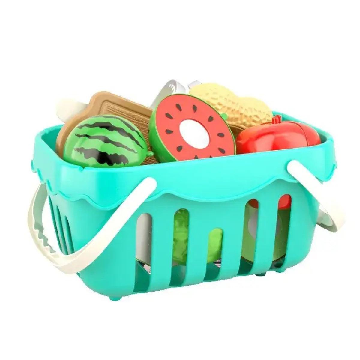 Набір фруктів пластикових для дітей, набір юних кулінарів + кошик і столові прилади, 17 предметів