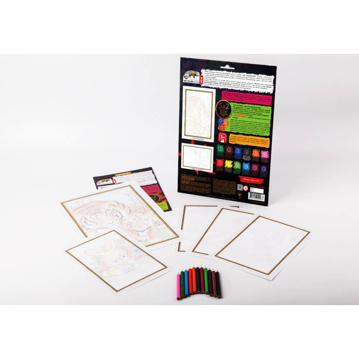 Спеціальними фарбами на заготовці нанесений малюнок майбутньої картини, необхідно ПРОСТО поверх зображення малювати олівцями, у зазначених секторах, відповідними кольорами. В підсумку у Вас вийде готова картина, виготовлена в техніці «ART COLORIZATION». Наші картини підходять для будь-якого типу кольорових олівців.
