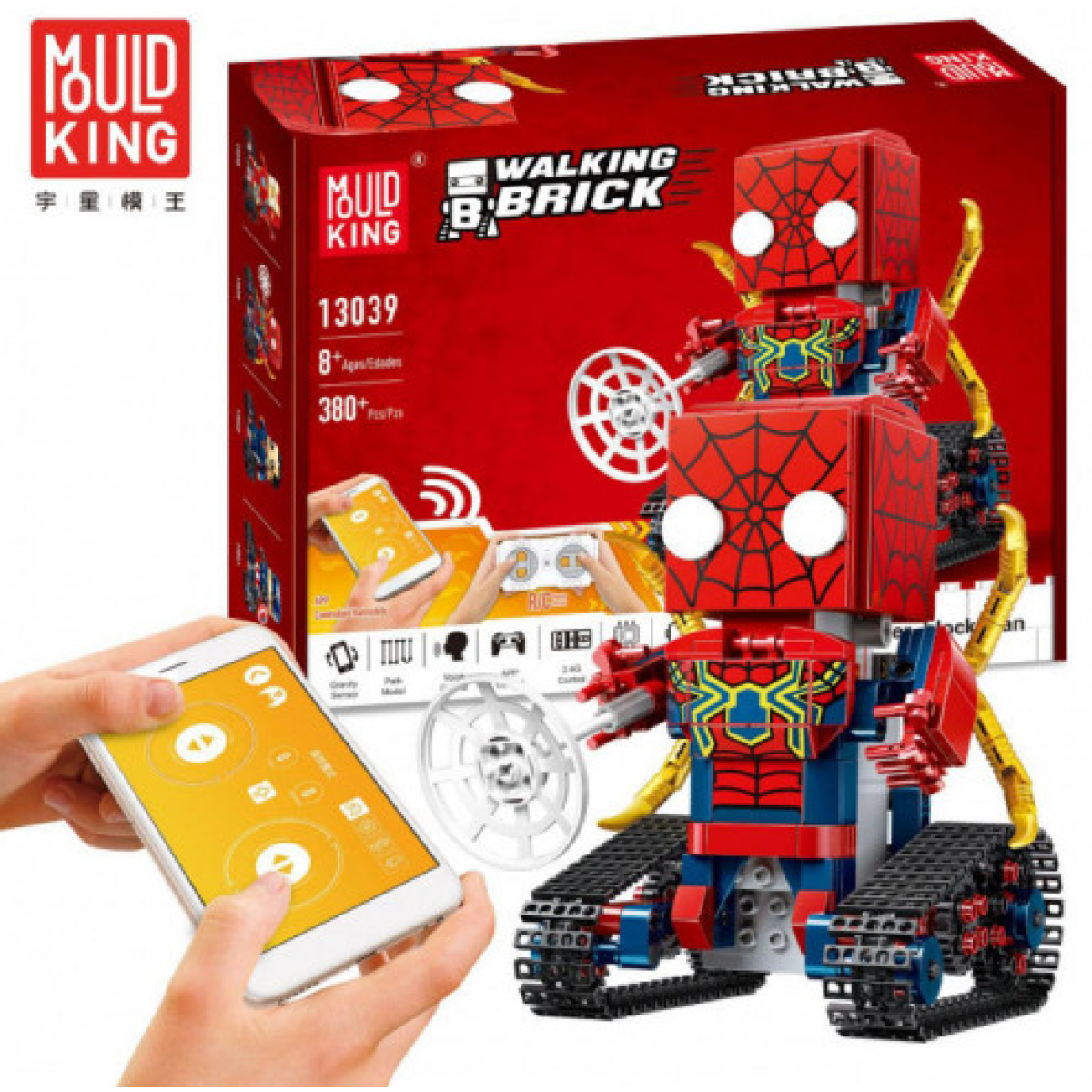 Конструктор MOULD KING Spider Людина Павук з ДК дозволить створити мініфігурку, здатну очолити військо супергероїв. Представлений набором на 380 деталей він виступить основою складання радіокерованого Marvel-воїна. Це фігурка персонажа, відомого за коміксами Marvel Comics. Її суперздатності яскраво відбиває костюм героя – одяг червоного і темно-синього кольору, що облягає, з чорним візерунком у вигляді павутини і яскравою емблемою на грудях у вигляді жовто-синього павука. З-за спини Spider Людини Павука видніються чотири золоті кінцівки членистоногих. В одній з його рук є отвір - знаряддя, що дозволяє стріляти і полонити супротивника липким павутинням супергероя. Відмінною особливістю нової Людини Павука Spider Man є пересування мульт супергероя гусеничним ходом. Справа в тому, що під корпусом мініфігурки розташовуються ніжки, що не виступають опорою, а трикутні стрічки гусеничного типу. На відміну від свого “стаціонарного побратима“ Людина Павук Spider Man може ворушити своїми павуковими кінцівками, розташованими за спиною героя. Від натискання кнопки дистанційного пульта починає рухатися і його ліва і права рука. Особливості моделі: Модуль основного впливу, що управляє: IBB 3.3 high speed Об“єм акумулятора: 3.7 V, 400 mAh. Двигун: Підвищеної потужності. Пульт керування: Bluetooth + 2.4G. Заряджання: 120 хвилин. Час гри: 40 хвилин. Дальність дії пульта керування: до 20 м. Необхідно докупити: 2 батареї ААА Комплектація: електричний привід, пульт дистанційного керування, USB кабель для заряджання, інструкція для збирання.