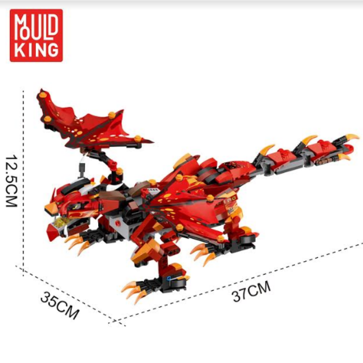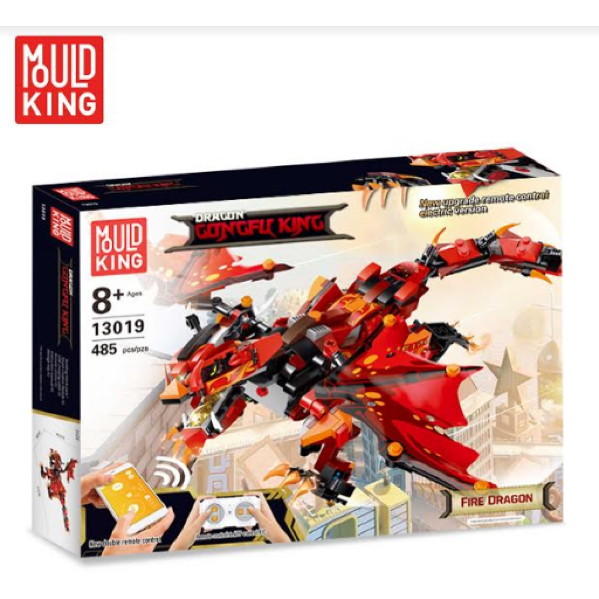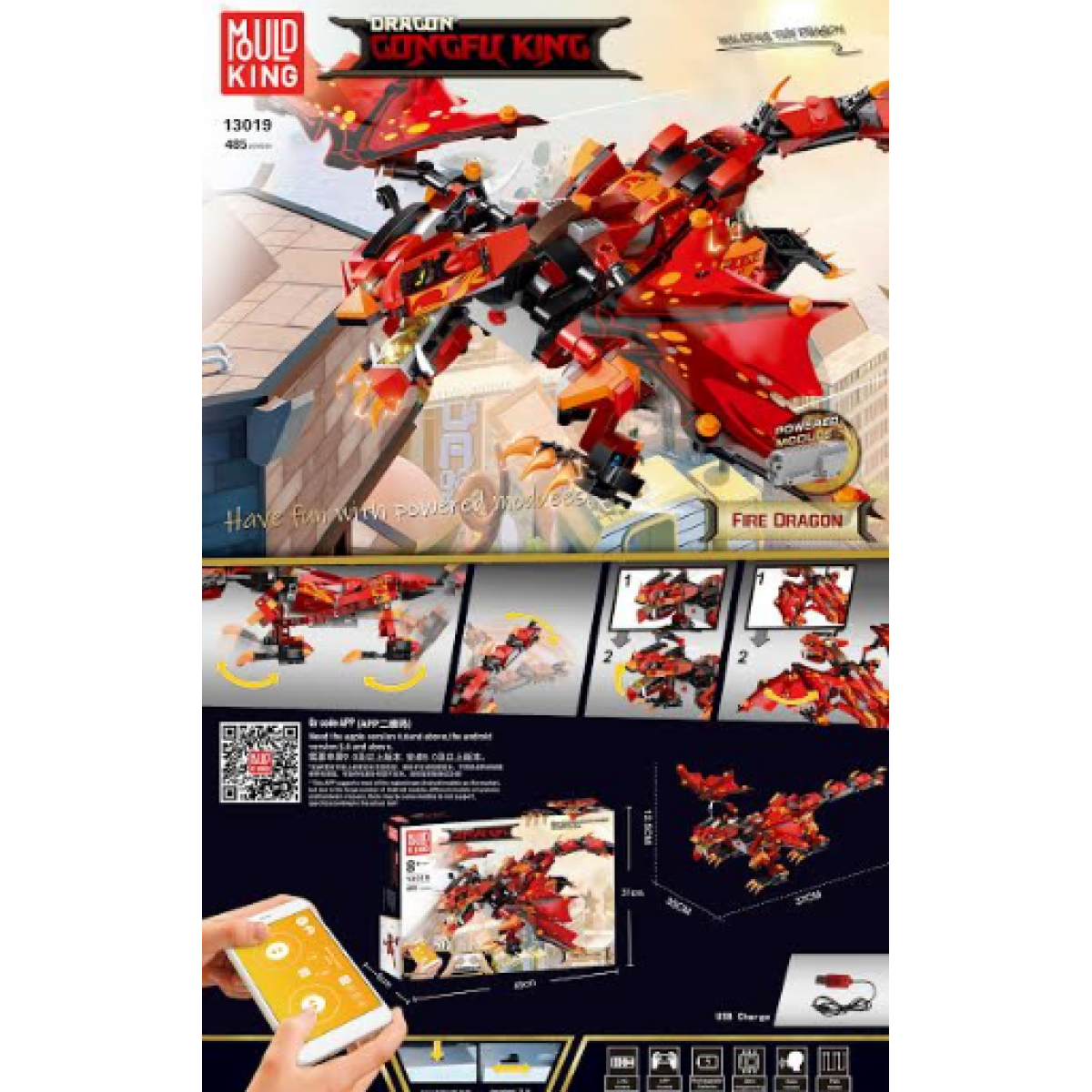 Конструктор MOULD KING Вогняний дракон з ДК підходить любителям сучасних іграшок. Представлений набором на 485 деталей, за допомогою вбудованого блоку управління, він дозволяє збірній моделі розгортатися, рухатися назад і вперед.