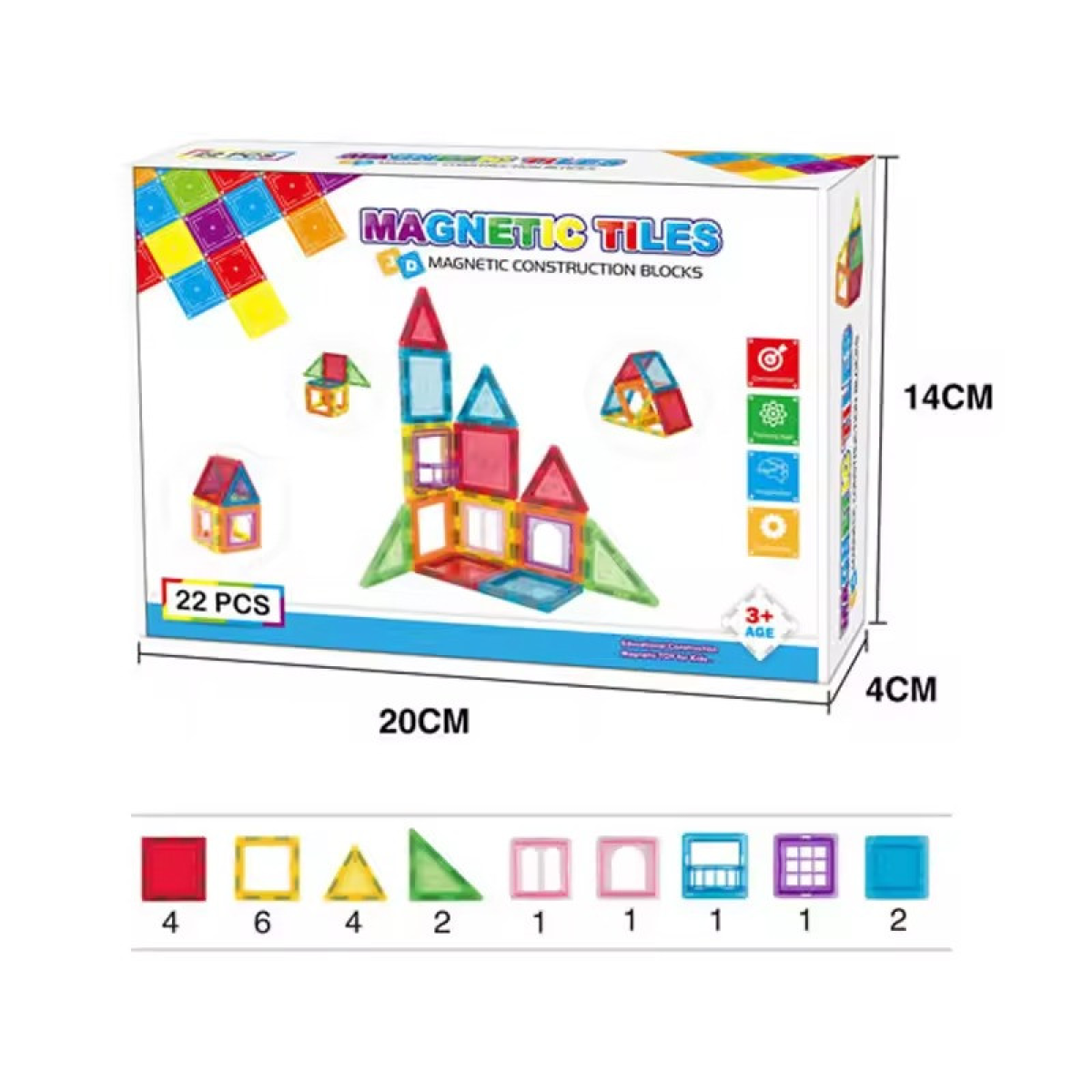 Конструктор магнітний дитячий різнокольоровий, на 22 деталі