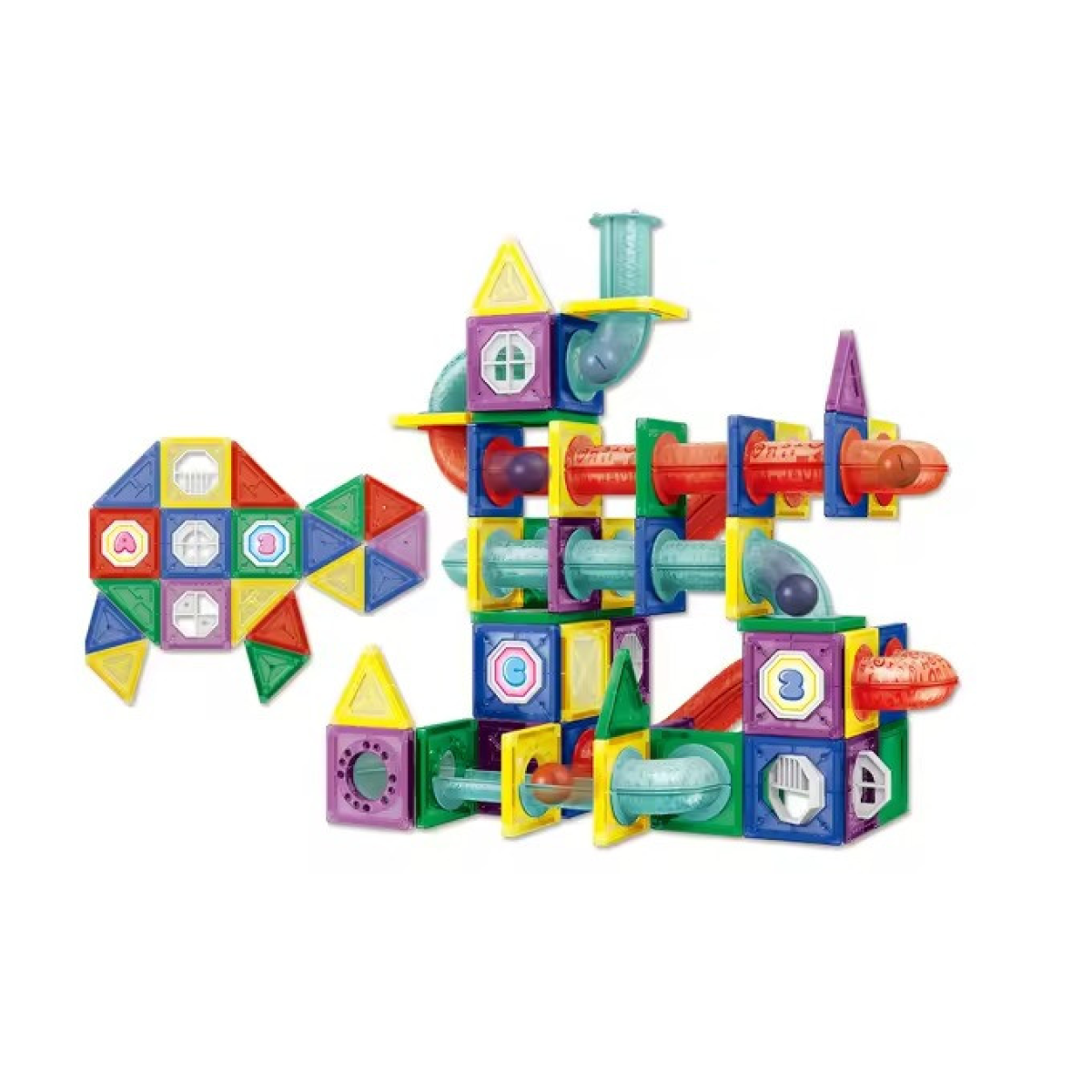 Захоплюючий конструктор-лабіринт для творчих ігор Конструктор-лабіринт на 95 деталей - це захоплива гра для дітей віком 3+, яка поєднує будівництво та гру з кульками. За допомогою різнокольорових трубчастих деталей, виготовлених із міцного ABS пластику, дитина може створювати складні та цікаві лабіринти. Магніти, закріплені всередині кожного блоку, забезпечують легке та надійне з“єднання елементів. Прозорі трубки для захоплюючого лабіринту Кожна деталь конструктора-лабіринту виготовлена з прозорих трубок, через які кульки скочуються з дивовижною швидкістю. Дитина може спостерігати за рухом кульок лабіринтом, що робить гру ще більш захопливою. У комплекті передбачено три кульки, які ідеально підходять для проходження створеними лабіринтами. Розвиток і безпека Цей конструктор не тільки розважає, а й сприяє розвитку логічного мислення, моторики та координації. Усі деталі виконані з безпечних матеріалів і мають гладкі краї, що робить гру безпечною для малюків. Розмір коробки 450 х 55 х 350 мм дає змогу зручно зберігати і транспортувати конструктор, роблячи його чудовим вибором для подарунка.