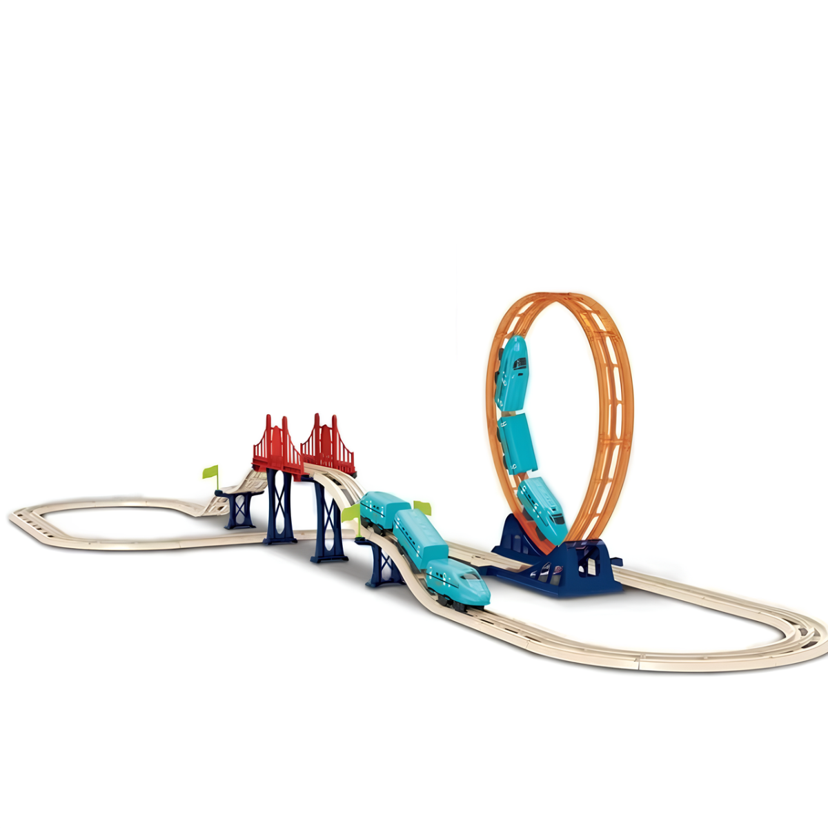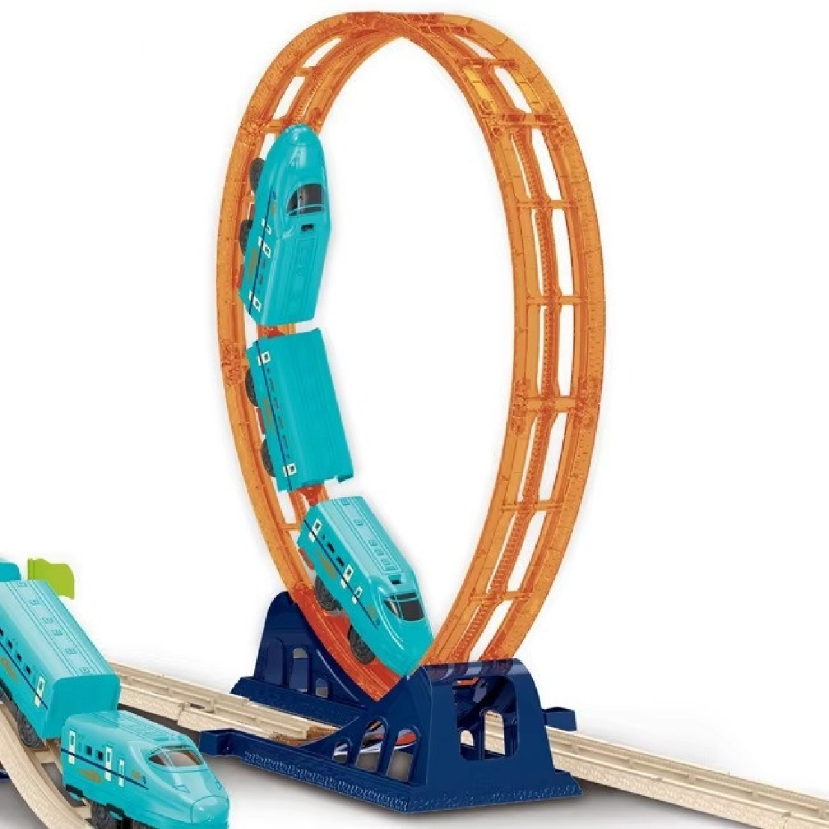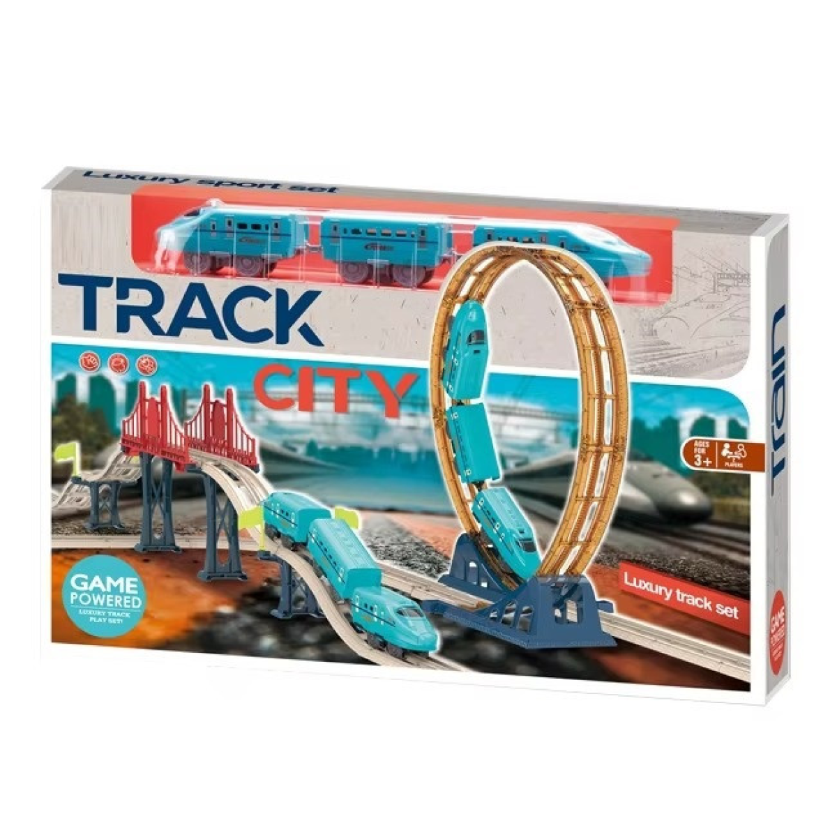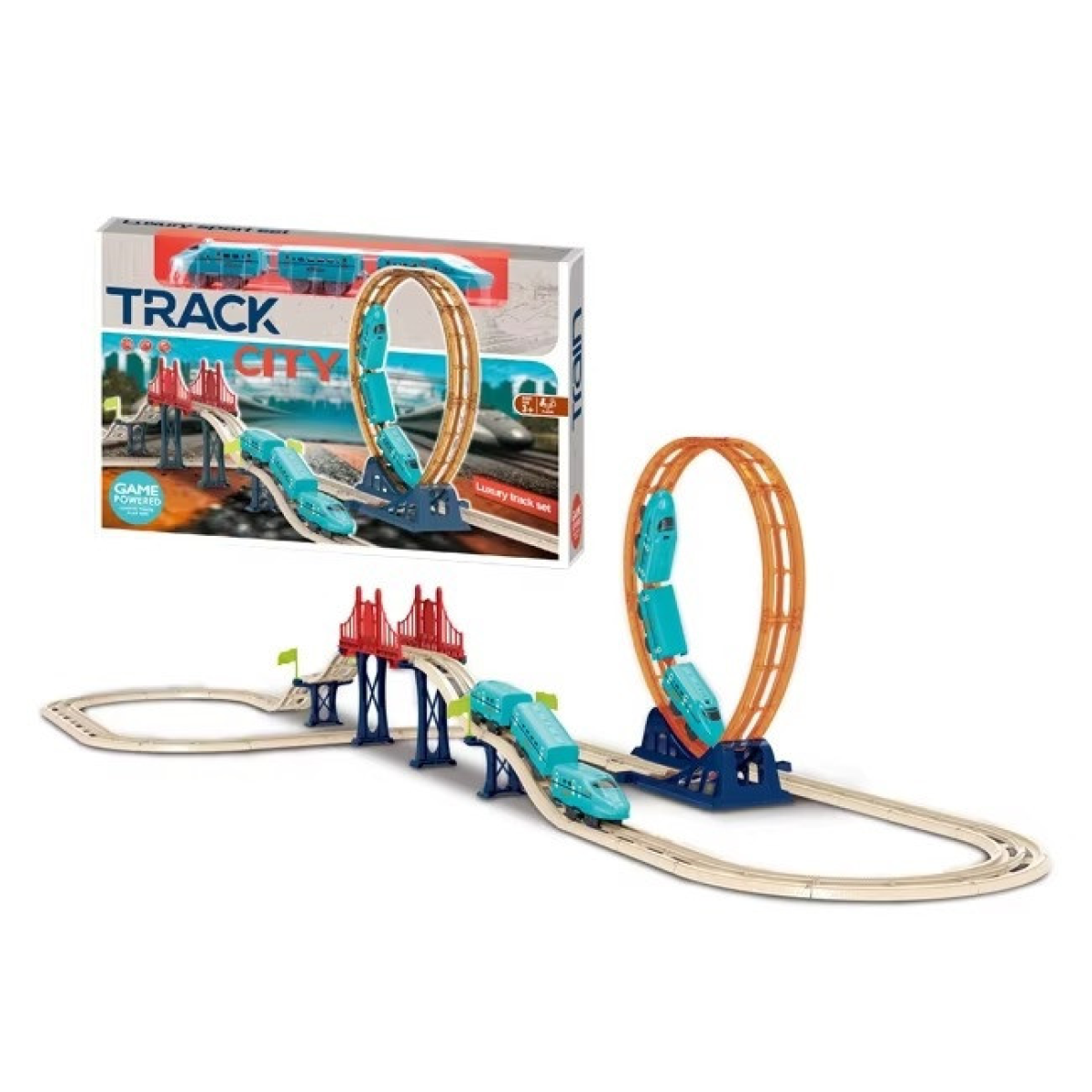 Залізниця з поїздом на батарейках CJ-4000543 Залізниця CJ-4000543 з блакитним поїздом - це захоплива іграшка, яка сподобається дітям і дорослим. Поїзд виконаний у вигляді швидкісного міського потяга, що робить його привабливим і реалістичним. Гра з цією залізницею не тільки розважає, а й розвиває координацію, логіку та уяву. Мертва петля і міст для додаткового екшену Однією з найбільш вражаючих особливостей цього набору є мертва петля висотою 43,5 см, яка додає динаміки та захопливості грі. Також у комплекті передбачено міст, який урізноманітнює маршрути та робить гру цікавішою. Розміри треку - ширина 85,6 см і довжина 182 см - дають змогу створювати масштабні та захопливі залізничні колії. Зручне живлення та якісні матеріали Поїзд працює від 4 батарейок формату AAA 1.5 V, що забезпечують тривалий час гри. Усі елементи набору виготовлені з міцного та безпечного пластику, що гарантує надійність і довговічність. Упаковка розміром 55.5 х 36.5 х 9.5 см зручна для зберігання і транспортування, що робить цей набір чудовим вибором для подарунка.