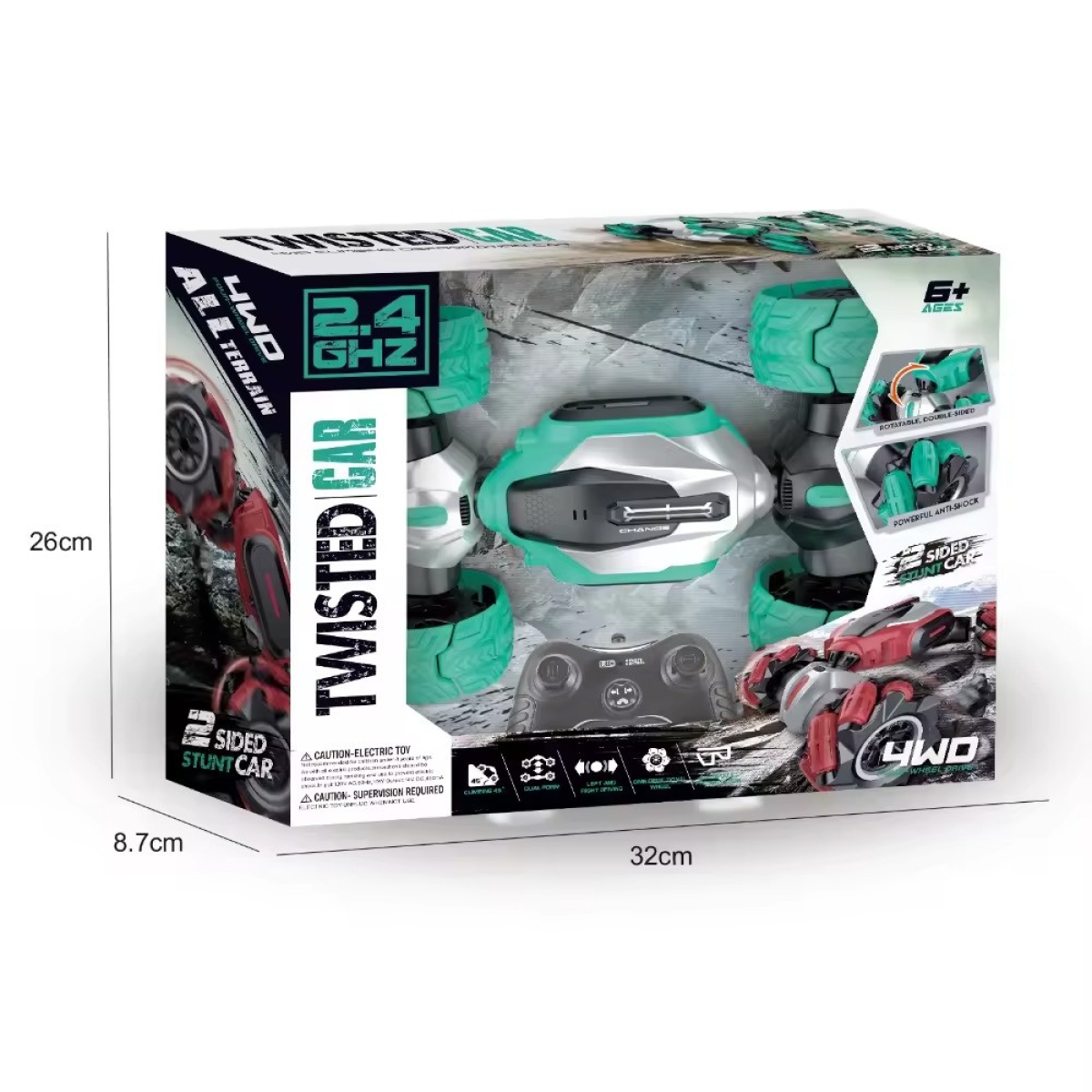 Машинка-перевертень на радіокеруванні з ефектами Ця машинка-перевертень на радіокеруванні поєднує в собі унікальні можливості руху і видовищні світлові та звукові ефекти. Вона виготовлена з міцного пластику й оснащена торсіонною підвіскою, що дає їй змогу легко справлятися з будь-якими поверхнями та виконувати трюки. Машинка також має функцію трансформації, піднімаючи кузов на 45 градусів, що додає ще більше динаміки в гру. Надійне керування і тривала робота Пульт керування на частоті 2.4G забезпечує впевнене керування на відстані до 10 метрів, даючи змогу розвивати швидкість до 7 км/год. Вбудований акумулятор 3.7V 500 мАг заряджається всього за 2 години і забезпечує до 30 хвилин безперервного руху. Пульт працює від двох батарейок формату AA (не входять до комплекту), а зарядка здійснюється через USB-кабель. Розвага для дітей від 6 років Ця машинка призначена для дітей від 6 років і старше. Вона не тільки долає перешкоди, а й оживає за допомогою світлових і звукових ефектів, створюючи захопливе шоу. Розмір машинки - 29.5 х 17.5 х 9 см, а упаковки - 32 х 26 х 6.7 см, що робить її зручною для зберігання і перенесення. Це чудова іграшка для активних ігор на вулиці або вдома, яка подарує багато радості вашій дитині.