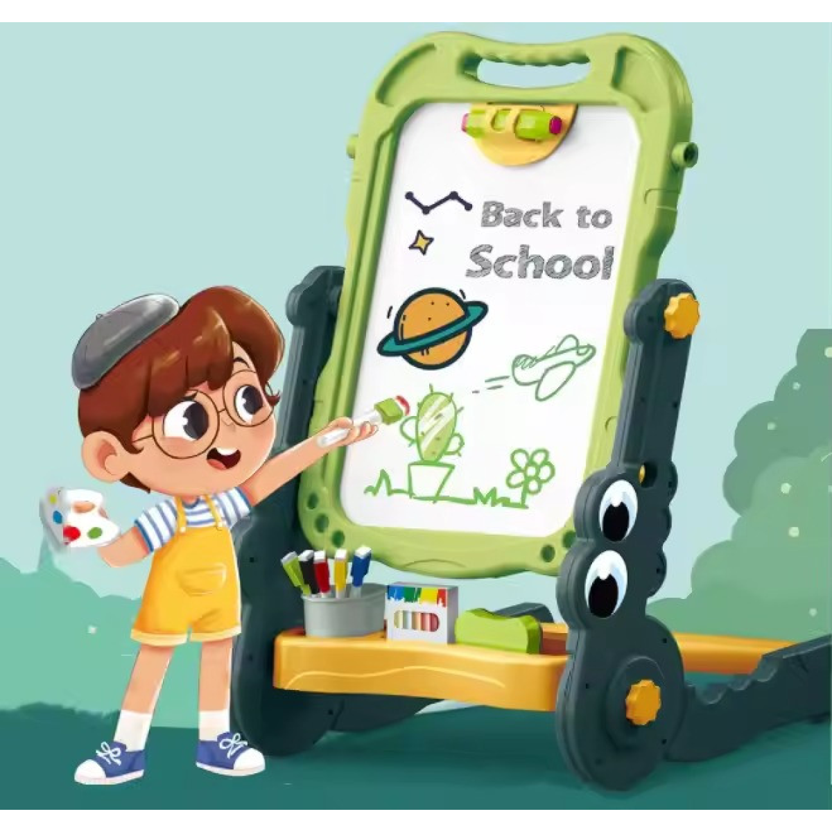 Магнітна дошка мольберт, підлоговий, дитячий на ніжках CJ-4046729, зелений