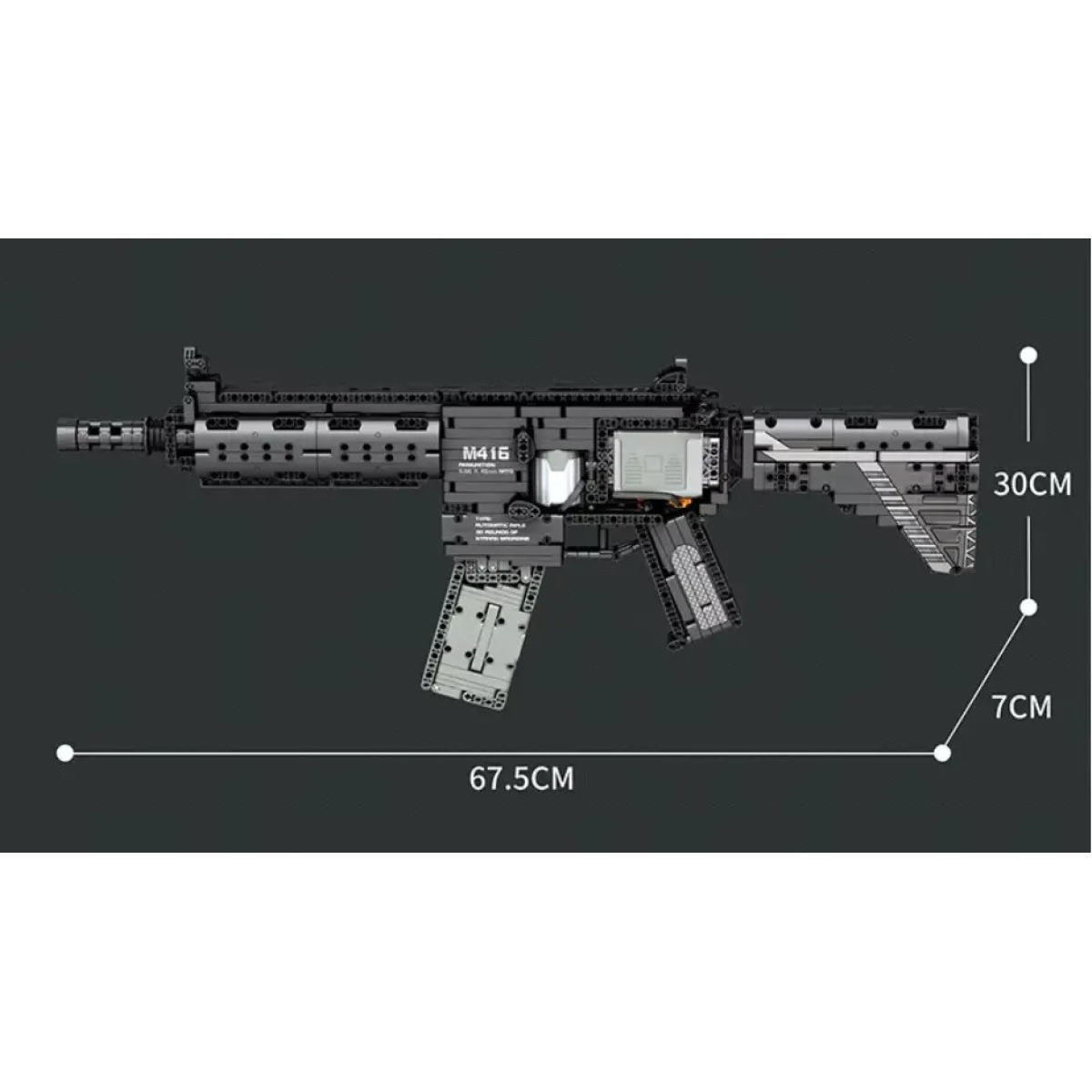 Конструктор штурмової гвинтівки M416 складається з 1188 деталей і пропонує зібрати точну модель популярної зброї з автоматичним приводом. Модель оснащена акумулятором, що дає змогу її використовувати в інтерактивних іграх. Цей набір призначений для тих, хто захоплюється військовою технікою і хоче зібрати реалістичну репліку штурмової гвинтівки. Розміри та вік Розміри зібраної гвинтівки становлять 67.5 х 30 х 7 см. Конструктор рекомендується для підлітків від 14 років і старше. Складання сприяє розвитку технічного мислення, дрібної моторики та уважності, пропонуючи захопливе заняття для більш зрілої аудиторії. Переваги Конструктор штурмової гвинтівки M416 дає змогу не тільки зібрати деталізовану модель, а й використовувати її в іграх завдяки автоматичному приводу. Детальна інструкція робить процес складання доступним навіть для новачків. Зібрана гвинтівка стане чудовим доповненням до колекції та забезпечить цікаві ігрові можливості.