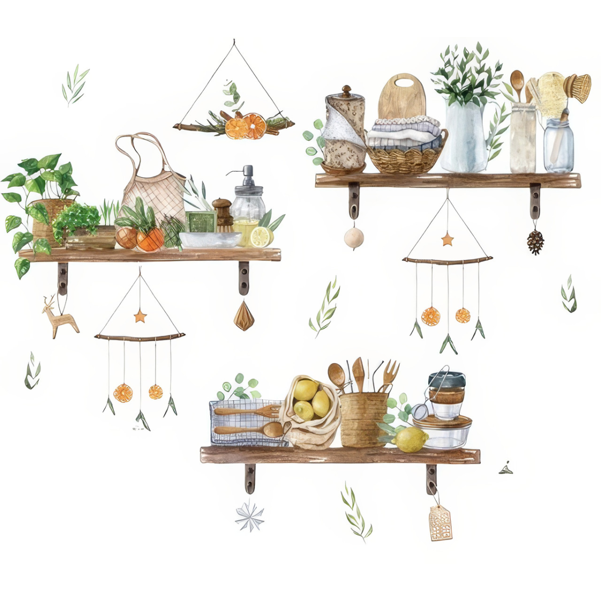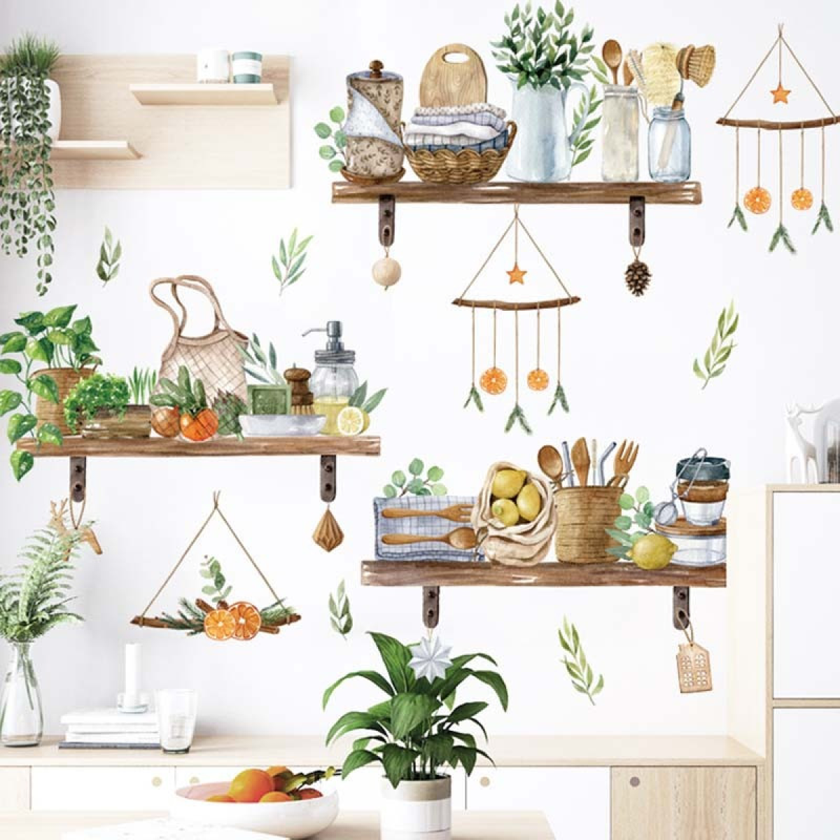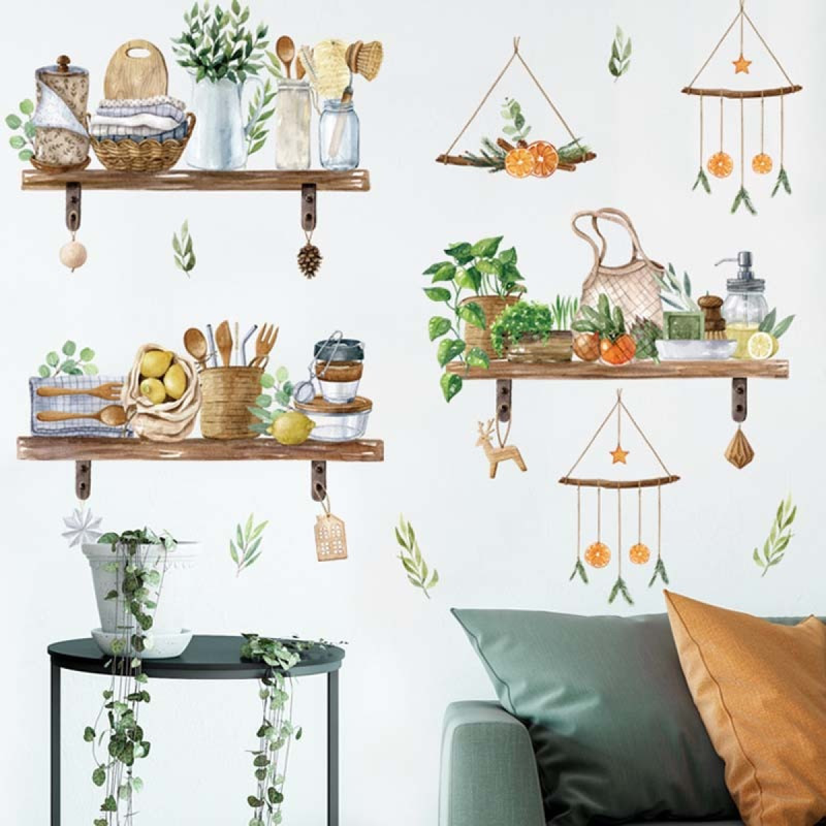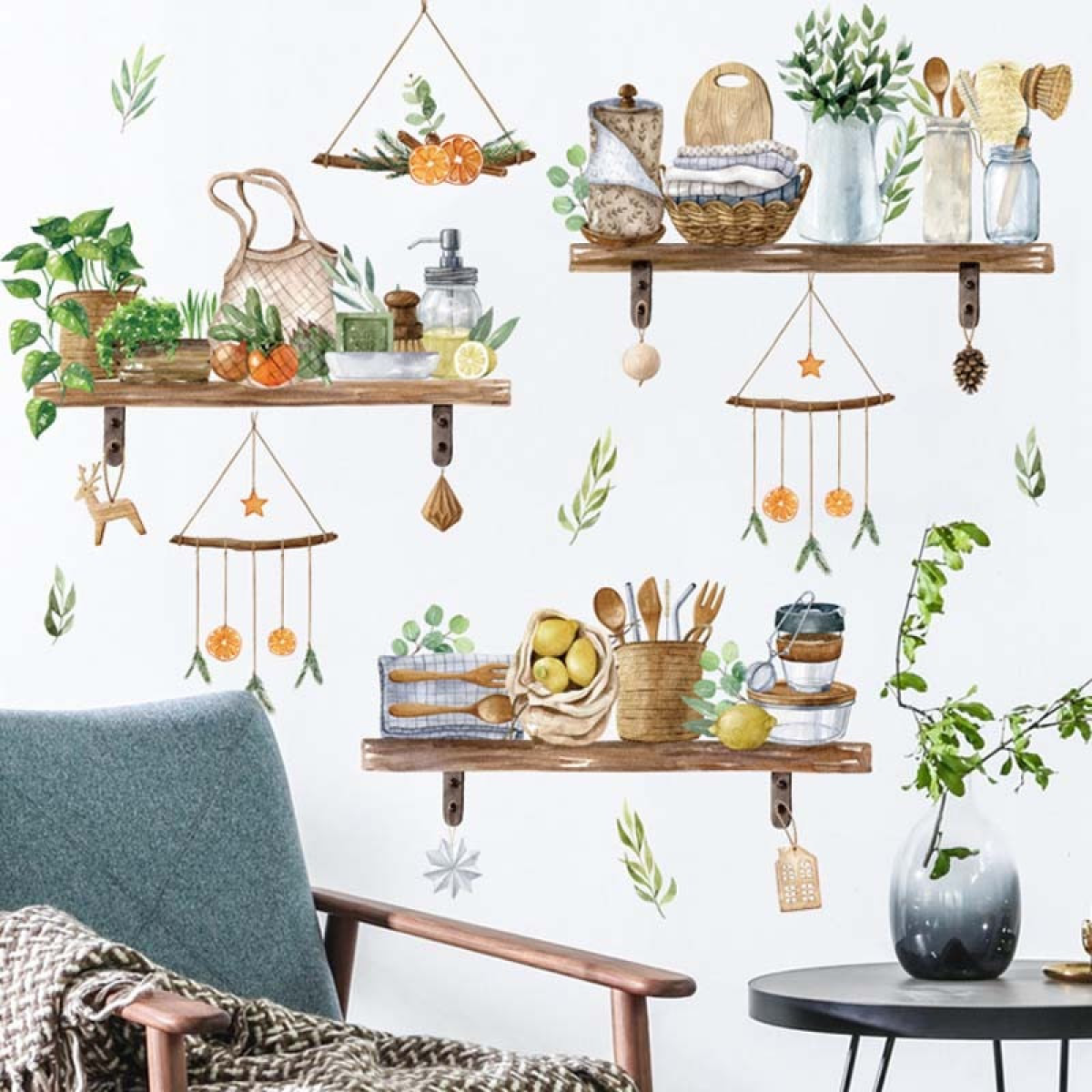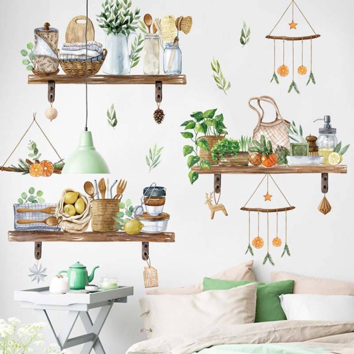 Чарівність сільського затишку Набір вінілових наклейок «Ранок у Селі» перенесе вас в атмосферу теплого ранку в затишній сільській кухні. Зображення дерев“яних полиць, на яких акуратно розставлено кухонне приладдя, створить гармонію і теплоту у вашому інтер“єрі. Ці наклейки ідеально підійдуть для декору стін кухні, їдальні або навіть кімнати в стилі прованс. Зручність і якість Наклейки виконані з міцного матеріалу ПВХ, який вирізняється легкістю в догляді та довговічністю. Розмір кожного полотна становить 30х90 см, що дозволяє прикрасити значну частину стіни. Гладка поверхня наліпок і чітка деталізація зображень роблять їх реалістичними та привабливими. Легкість у використанні Монтаж наліпок гранично простий: завдяки самоклейній основі ви зможете самостійно прикрасити кімнату без зайвих зусиль. Комплект з двох полотен дозволяє гнучко підійти до оформлення простору, створюючи затишок і стиль. Особливості: Розмір: 2 полотна 30х90 см. Матеріал: ПВХ. Тематика: дерев“яні полиці з кухонним приладдям. Простота наклеювання та догляду.Набір вінілових наліпок «Ранок у Селі» інтер“єрна наклейка в кімнату на стіну 30х90 см.