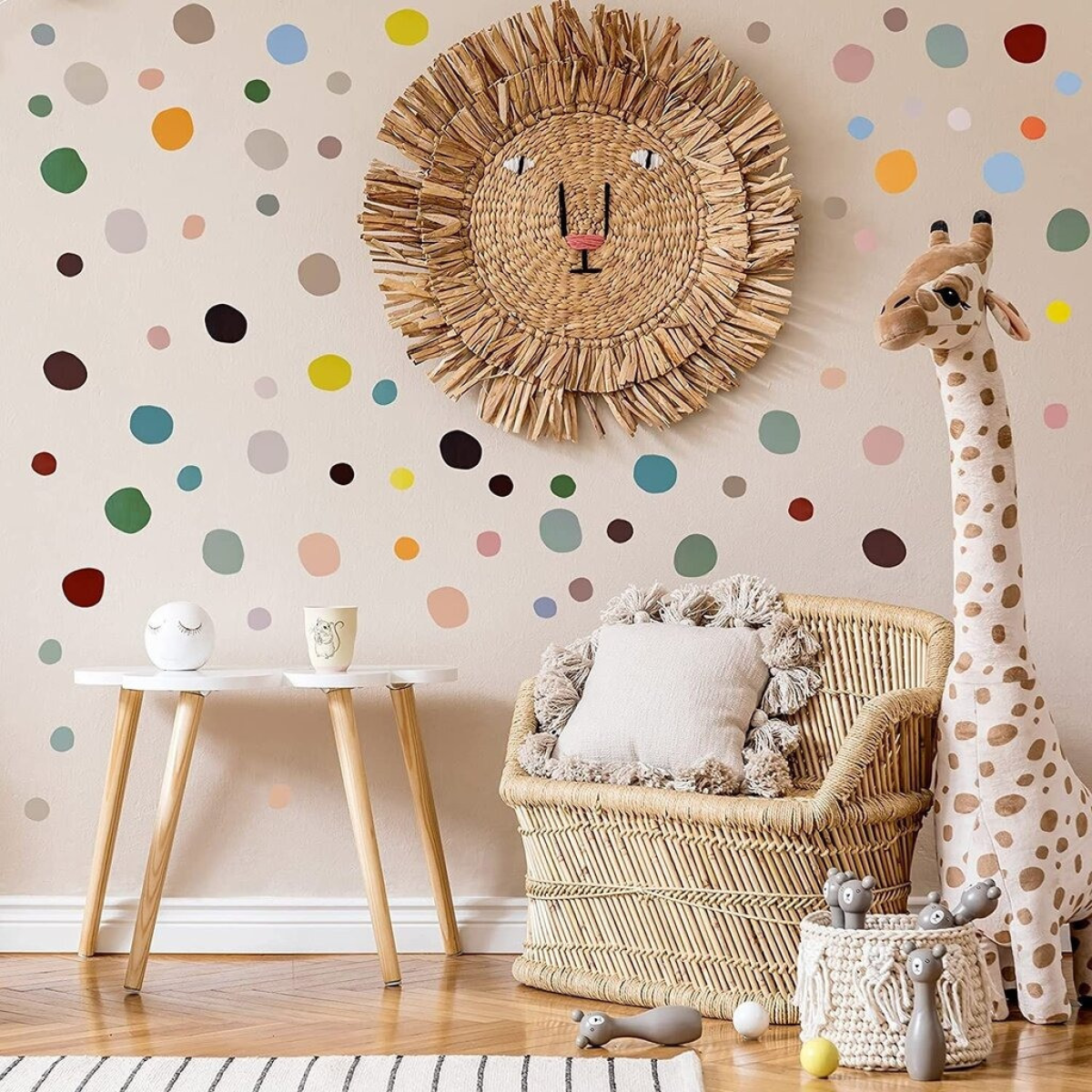 Додайте яскравості та затишку в дитячу кімнату! Набір вінілових наклейок «Кольоровий горошок» стане яскравим акцентом в інтер“єрі дитячої кімнати. Різнокольорові кружечки різних розмірів і форм дарують свободу творчості, дозволяючи створювати унікальні композиції на стінах. Веселий дизайн підійде як для дівчаток, так і для хлопчиків, гармонійно вписуючись у будь-який стиль оформлення кімнати. Творіть і прикрашайте разом із дітьми! Набір включає 8 аркушів наклейок розміром 25х35 см, з яких можна створити як великі композиції, так і невеликі акценти. Легкість нанесення дозволяє дітям брати участь у процесі декорування, розвиваючи фантазію і дрібну моторику. Матеріал наліпок - високоякісний ПВХ, який стійкий до вологи і легко очищається від забруднень, що робить їх ідеальним вибором для дитячої кімнати. Практично, стильно і безпечно! Наклейки легко клеяться на будь-яку гладку поверхню і за необхідності без слідів знімаються, що дозволяє змінювати інтер“єр за вашим бажанням. Матеріали повністю безпечні для дітей, не мають запаху і прослужать довго, радуючи вас і ваших малюків. Особливості: Набір із 8 аркушів наклейок розміром 25х35 см. Різнобарвний «горошок» різних форм і розмірів. Матеріал: безпечний і довговічний ПВХ. Легко клеяться і знімаються, не пошкоджуючи поверхню. Можливість створення унікальних композицій.