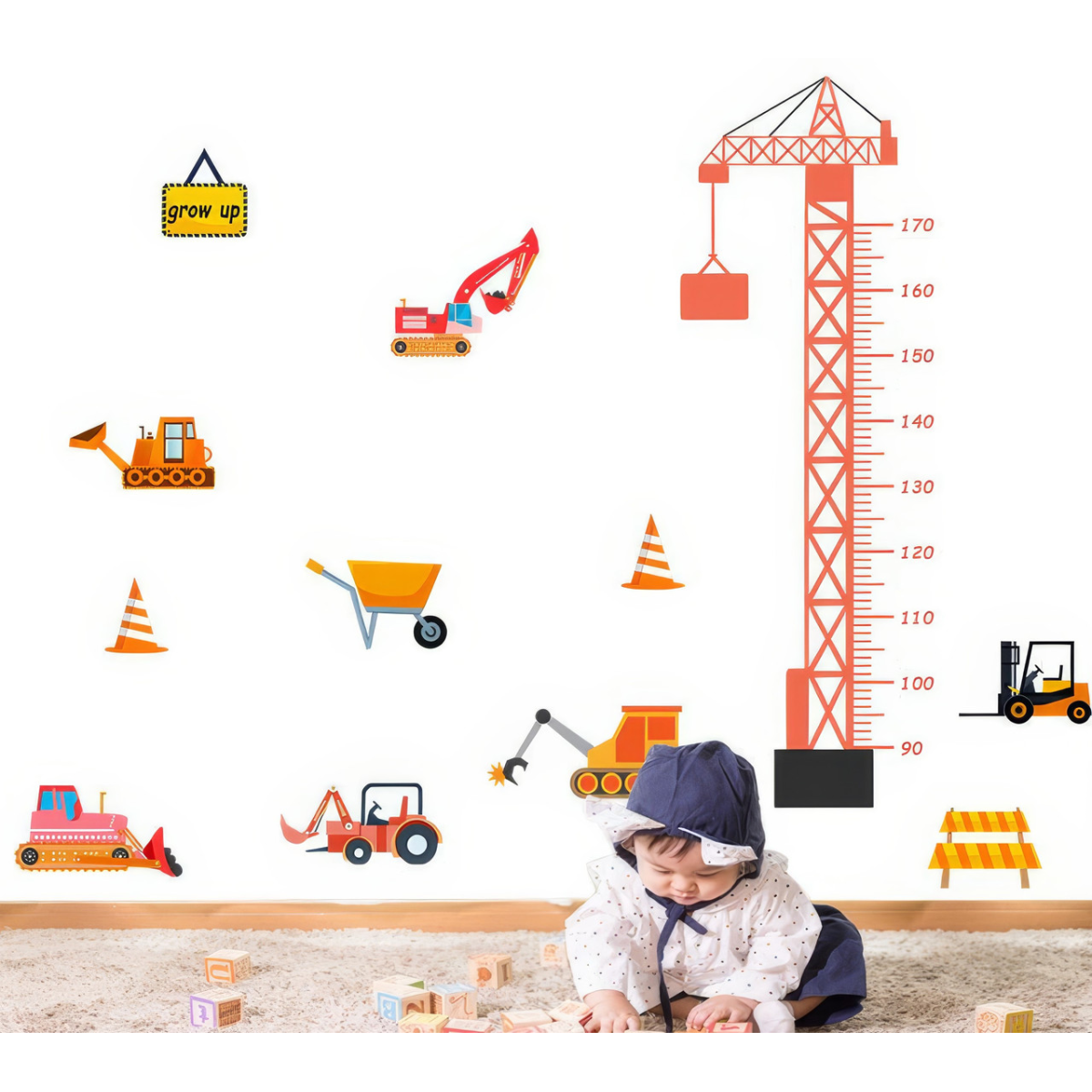 Особливістю набору є наклейка із зображенням висотного крану, який слугує не лише декоративним елементом, а й ростоміром для вашої дитини. Сантиметрова шкала від 90 до 170 см допоможе стежити за зростанням малюка, перетворюючи кожен сантиметр на радісну подію. Цей функціональний елемент робить набір наклейок не просто прикрасою, а й корисним інструментом для батьків.