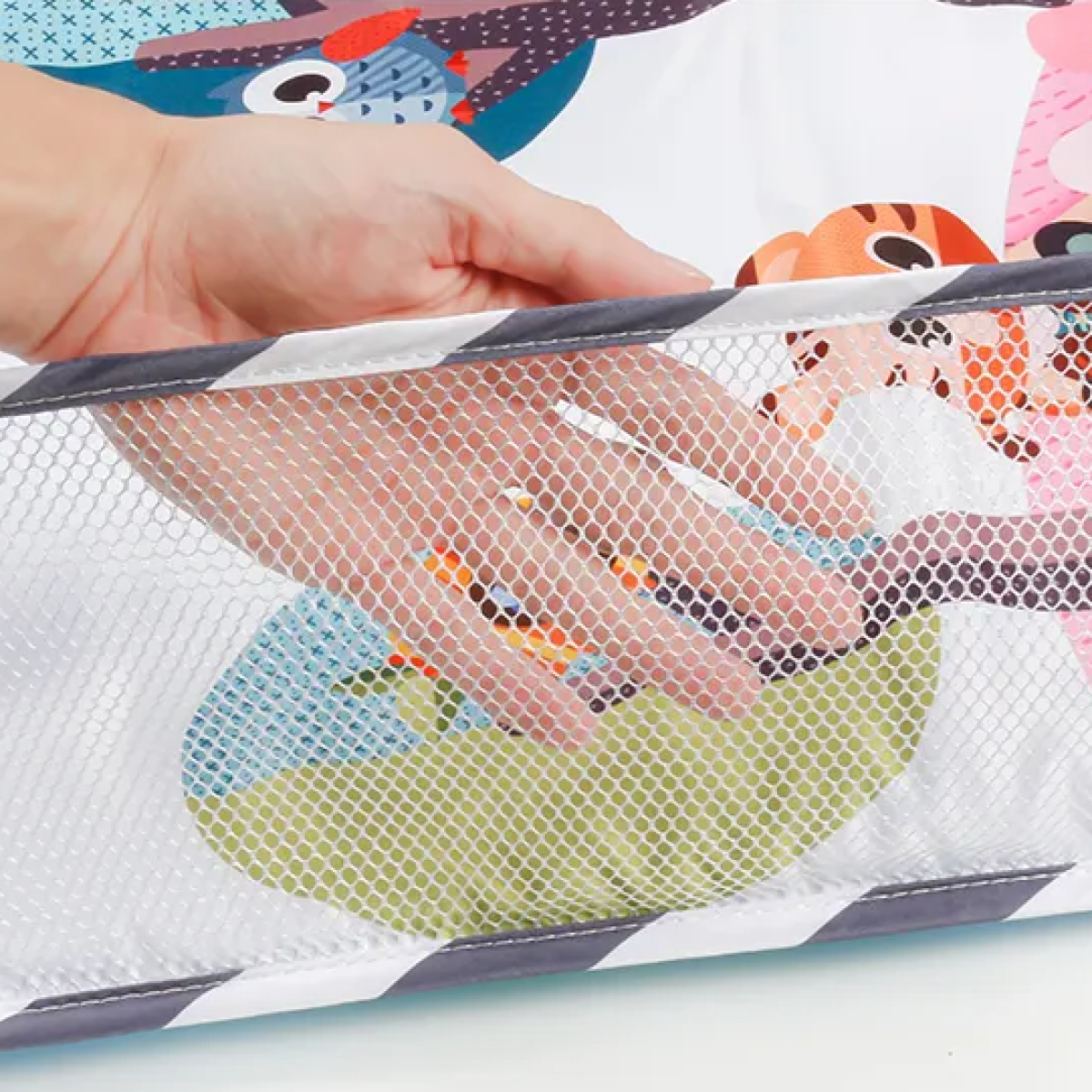 Дитячий розвиваючий килимок-манеж з дугами і кульками ідеальний вибір для захопливих ігор і розвитку вашого малюка. Він призначений для дітей від народження до 24 місяців, пропонуючи різноманітні можливості для гри, відпочинку та навчання. У комплект килимка входять 5 підвісних іграшок, серед яких м“яка книжка, два брязкальця та дві іграшки-гризунки. Всі іграшки можна переміщати по дугах зі спіненого матеріалу, легко адаптуючи їх до вікових потреб малюка. Також до комплекту включено 20 яскравих кульок, які чудово підходять для гри в міні-басейні. Яскраві зображення тварин на килимку сприяють розвитку зорового сприйняття малюка. Підвісні іграшки та кульки стимулюють розвиток хапальних рефлексів і координації рук. М“яка основа з додатковим бавовняним наповненням гарантує комфорт, а захисна сітка підвищує безпеку, запобігаючи випадковому випаданню дитини. Килимок підходить для різних вікових етапів: для новонароджених він стане зручним місцем для відпочинку та вивчення навколишнього світу, для малюків віком від 6 місяців - інструментом для розвитку хапальних навичок і сенсорного сприйняття через гру з іграшками та кульками, а для дітей віком до 2 років - чудовим помічником у розвитку моторики та дослідницьких навичок. Характеристики: Комплектація: килимок, 20 яскравих кульок, 5 підвісних іграшок Розмір: 80×80×50см Упаковка: 42×32×14см Колір: рожевий