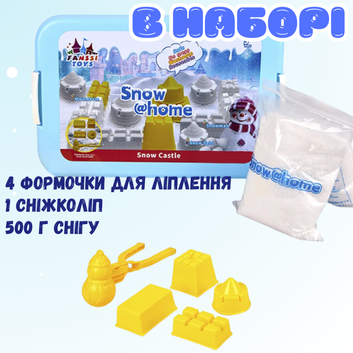 Набір снігу кінетичний пісок для дітей, набір “Сніговий замок”, маса для ліплення, творчості з формою для ліплення