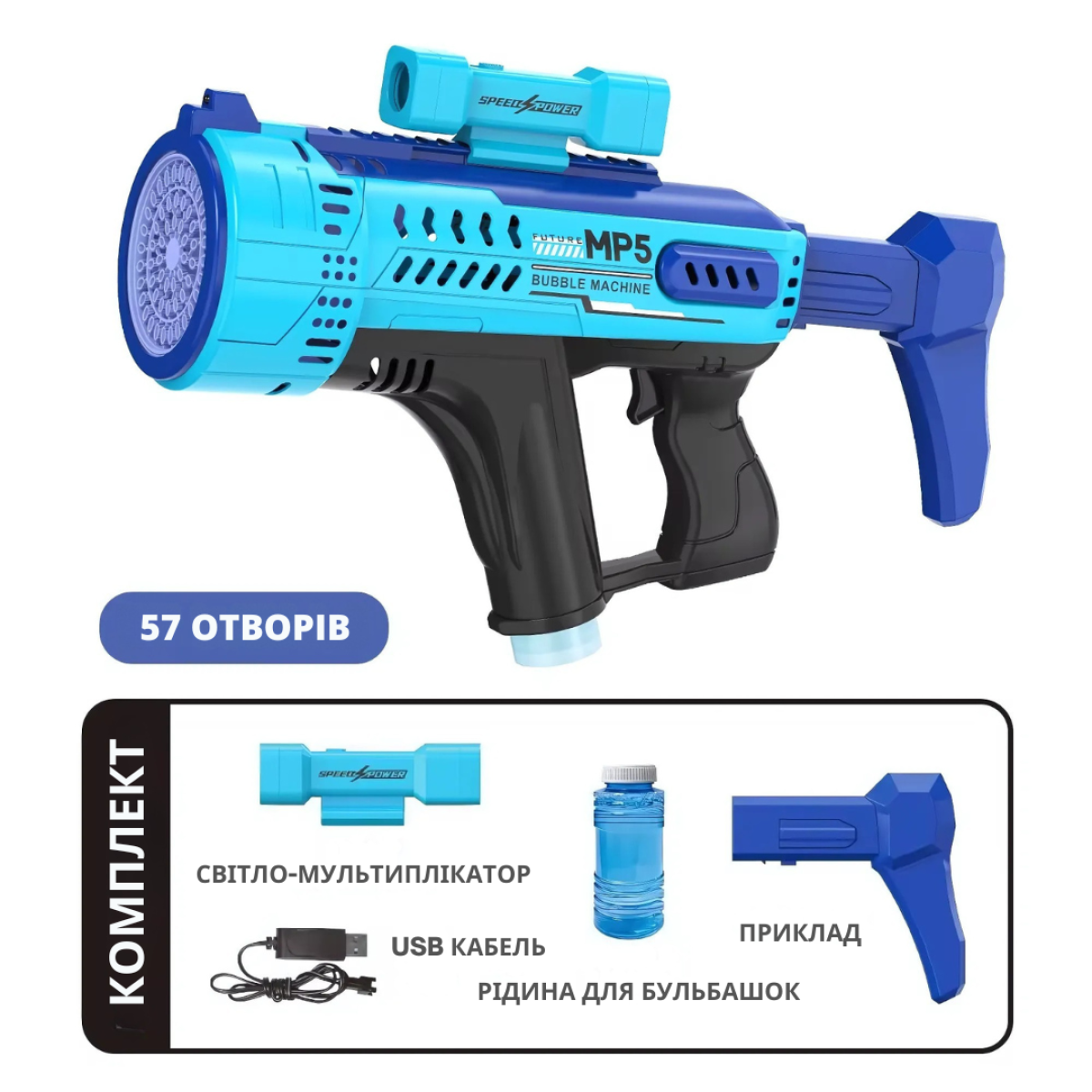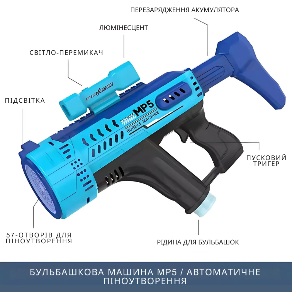 Мильні бульбашки для дітей, пістолет для мильних бульбашок з підсвічуванням, іграшковий генератор бульбашок, синій